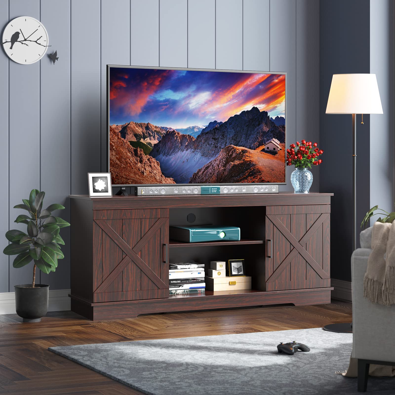 Entertainment Center for 65 Inch TV, Farmhouse TV Stand with Double Barn Doors