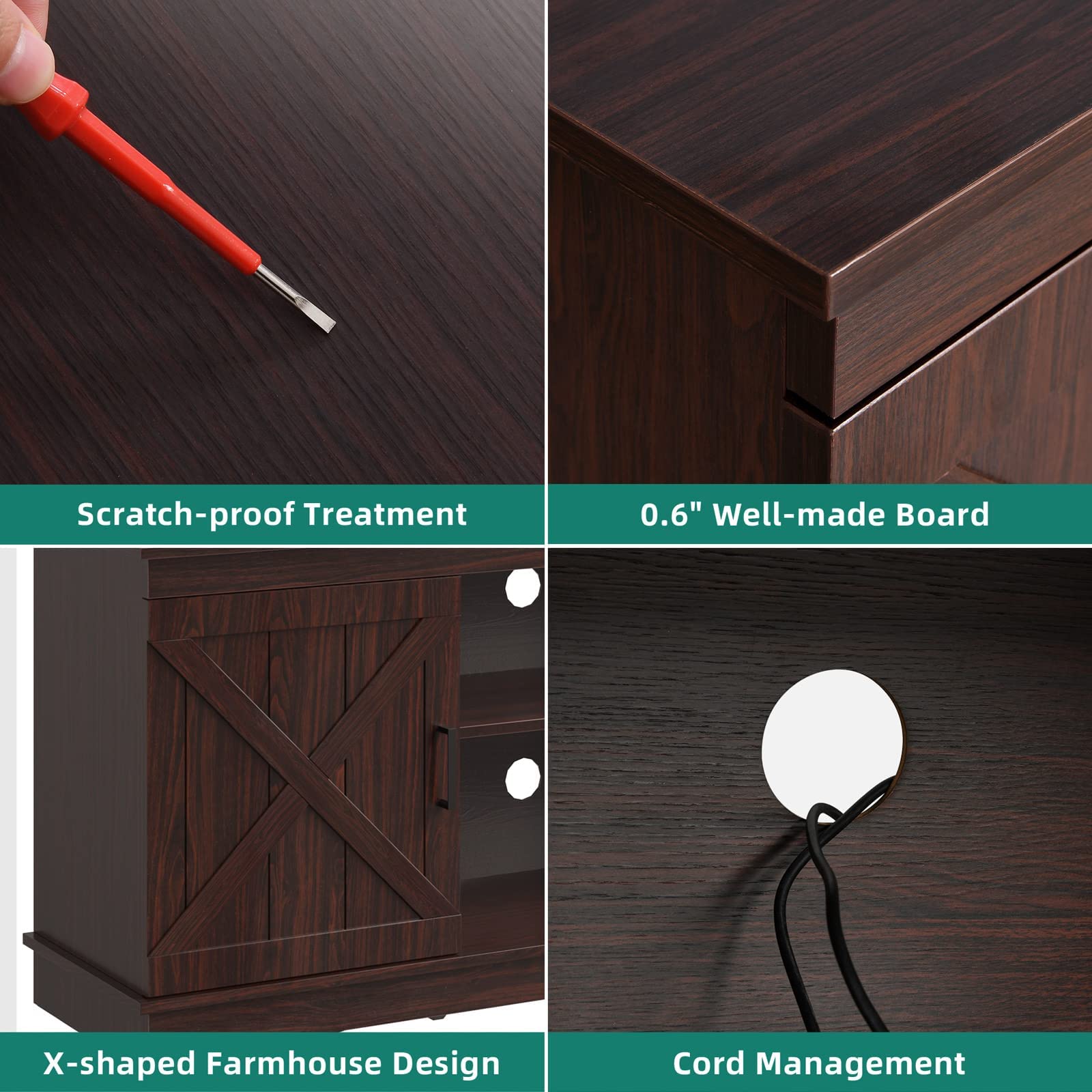- SCRATCH-PROOF & STURDY FOR 300LBS - The farmhouse TV stand is made from well-done P2 MDF with high-level wood grain. This TV stand fits 50/ 55/ 60/ 65 inch TV. Dimensions: 59.5“ L×15.7” W×25.6“ H