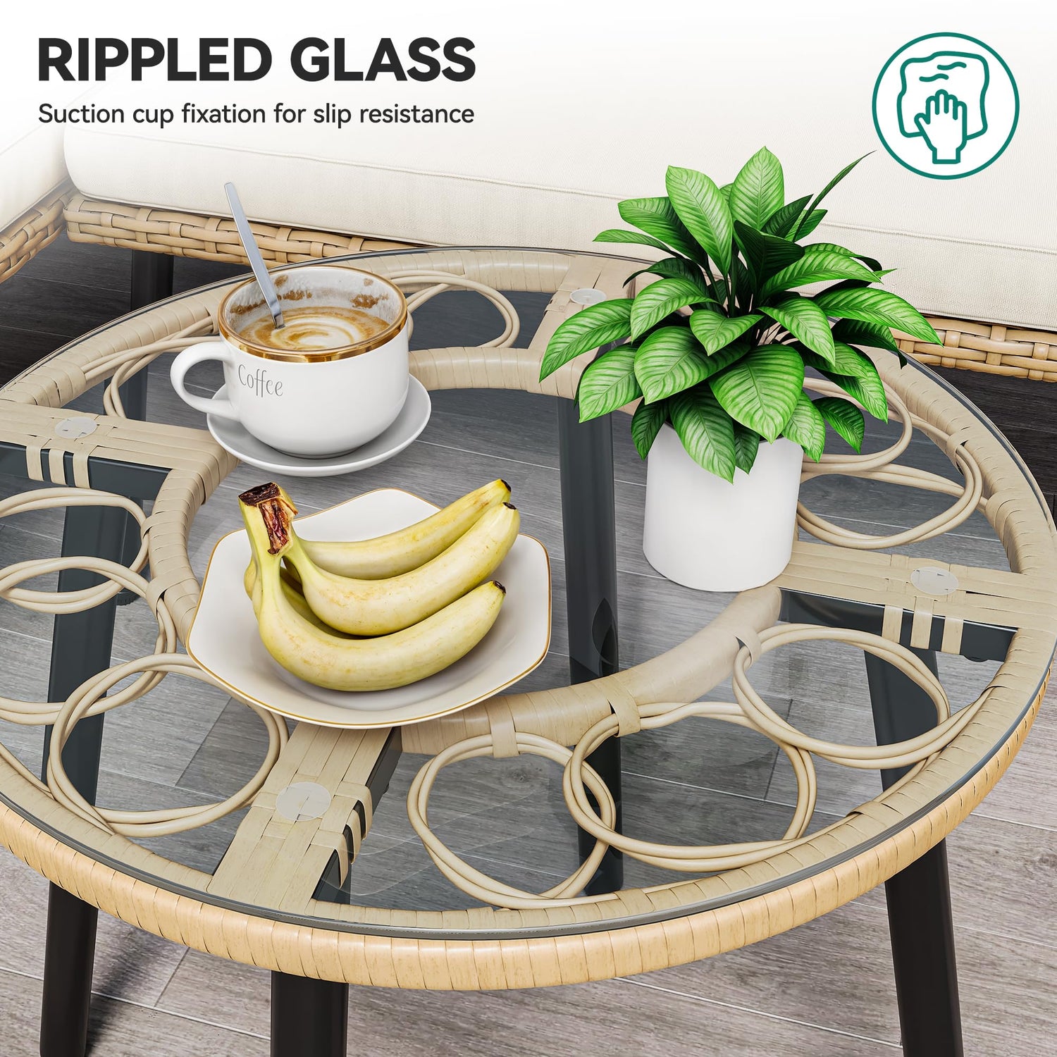 - Corrugated Glass Tabletop: The stylish complementary side table is topped with corrugated glass for extra protection and sturdy, easy-to-clean support for foods, drinks, and other items within 600lbs