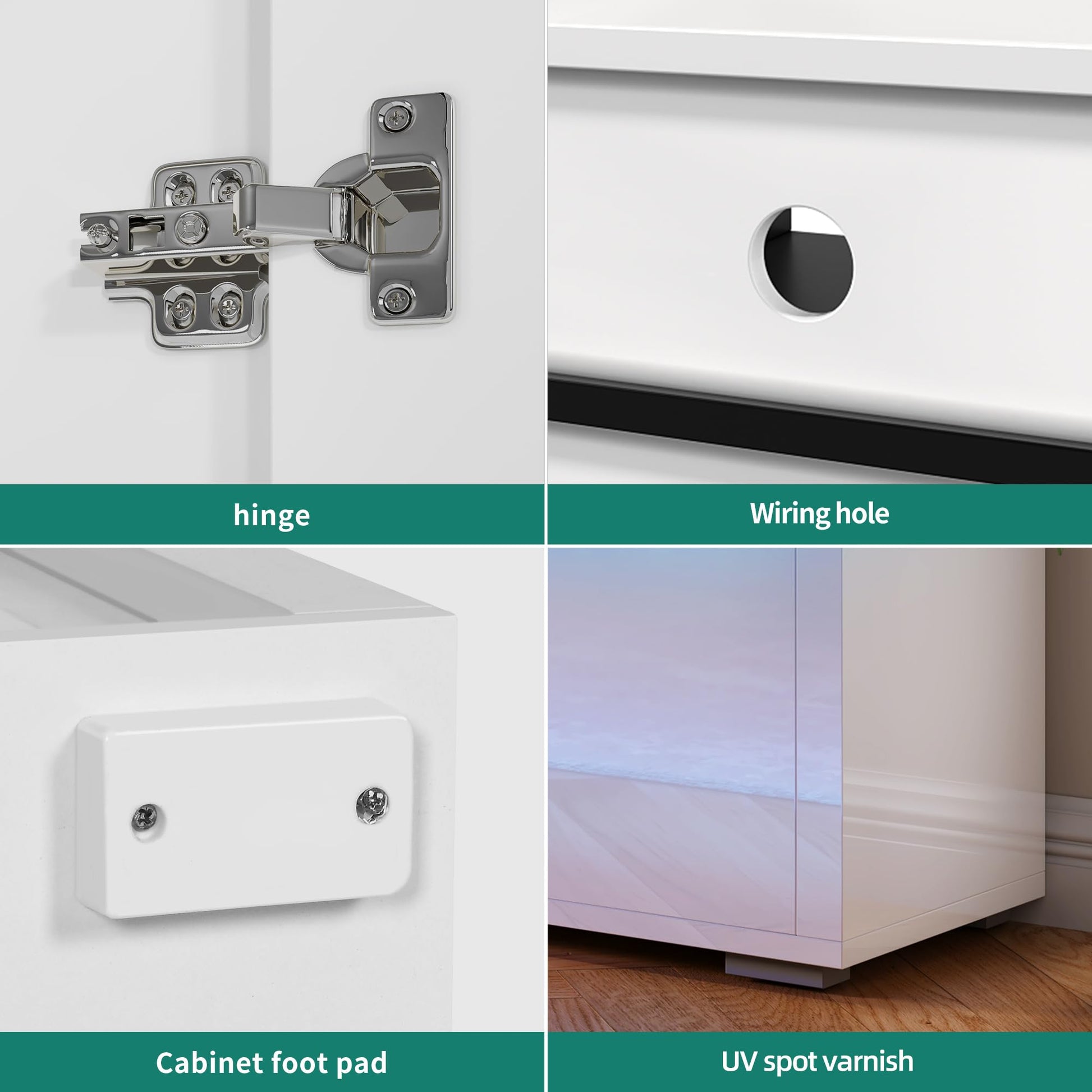 - Modern & Fashionable Design: The sleek white entertainment center is crafted to complement any room's decor, making it a versatile choice for living rooms, bedrooms, offices, study rooms, and other places. Easy-to-clean surface for daily maintenance.