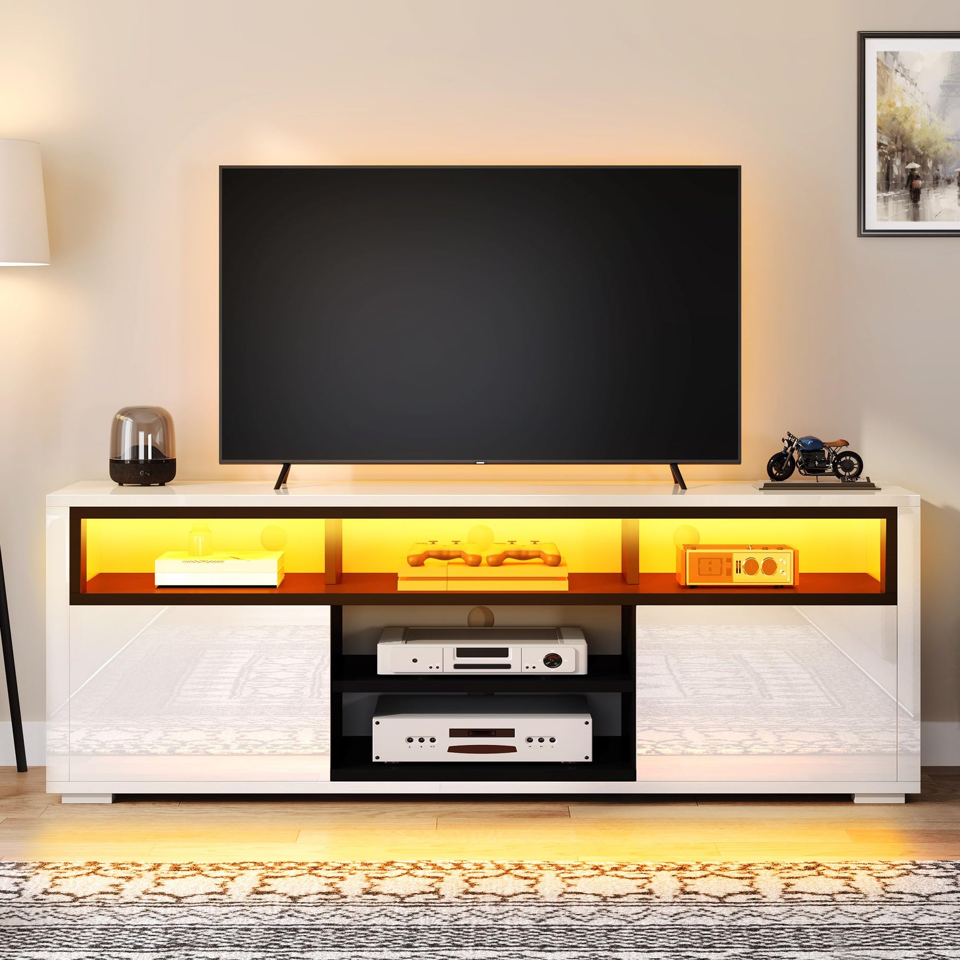 LED TV Stand for 65 inch TV, Modern Entertainment Center with 2 Storage Cabinet,