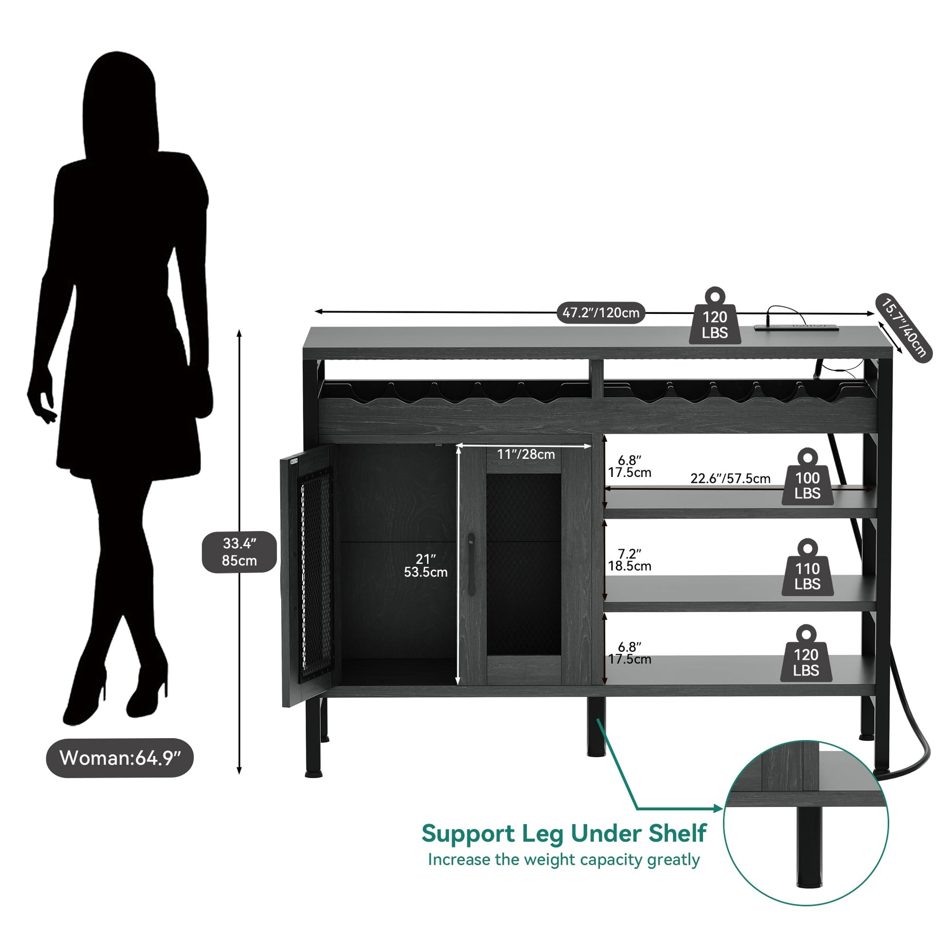 Liquor Cabinet Bar for Home, 47" Industrial Wine Buffet Cabinet