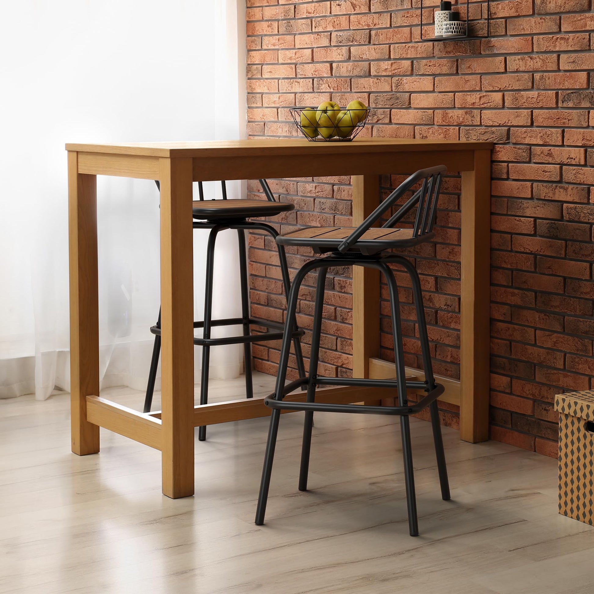 - All-weather Bar Stool Set - YITAHOME outdoor barstools swivel feature heavy-duty metal construction with a looped metal connecting tube under the plastic wood seat for extra stability and durability. Withstands all weather conditions and is resistant to breakage and rust
