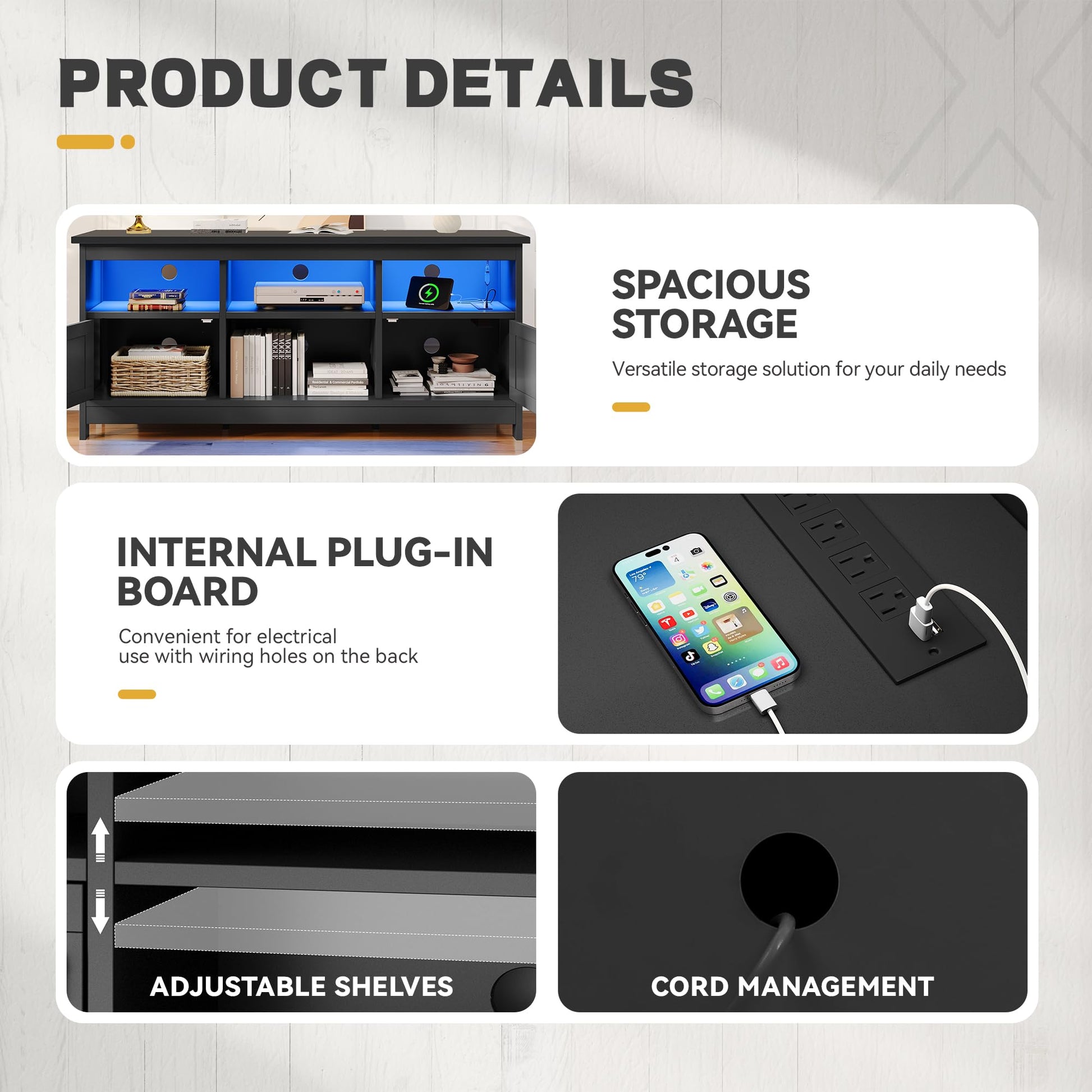 YITAHOME TV Stand for 65 Inch TV, Entertainment Center with LED Light and Power Outlet, Farmhouse TV Cabinet, Television Stands for Living Room, Black