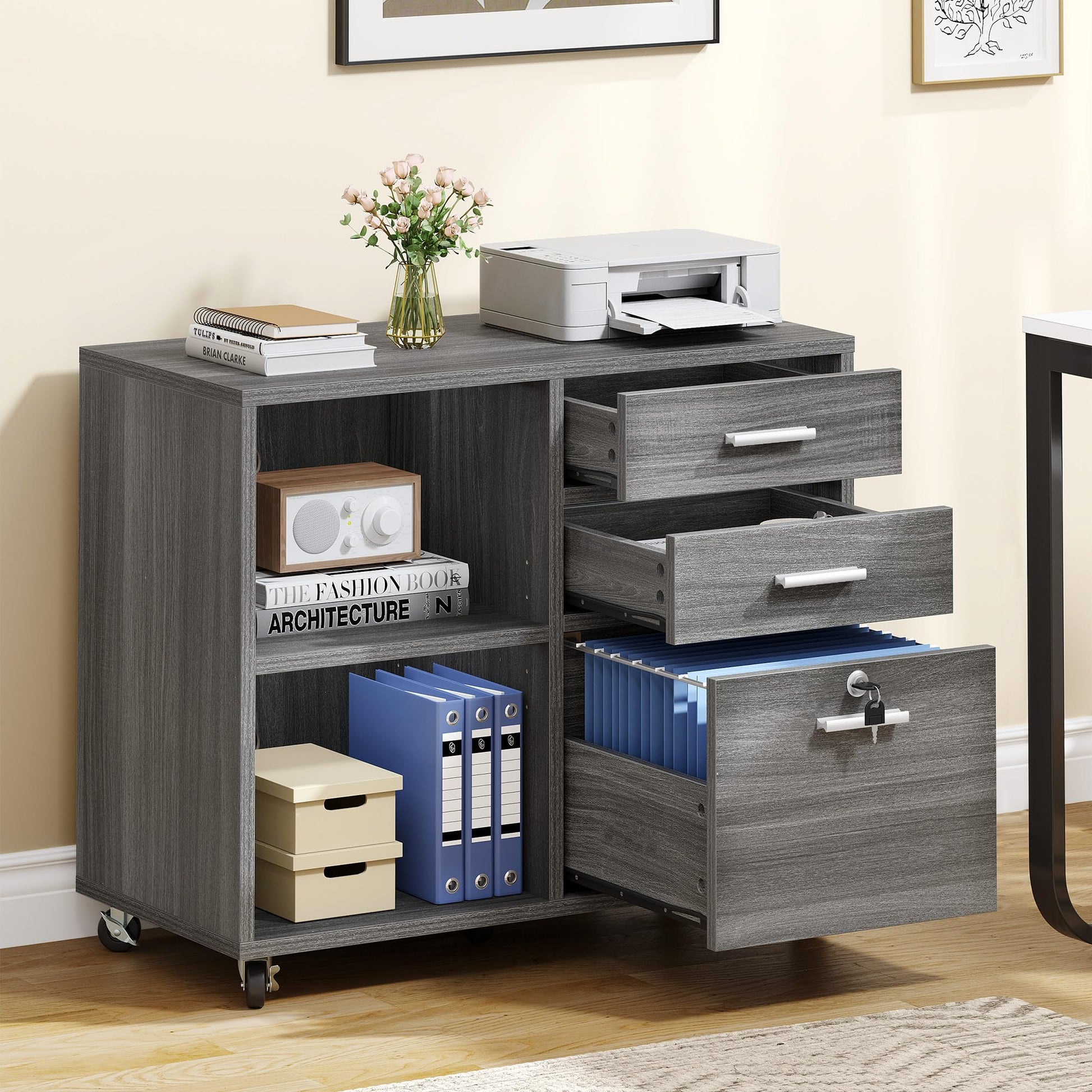 Wood File Cabinet, 3 Drawer Mobile Lateral Filing Cabinet, Storage Cabinet Printer Stand