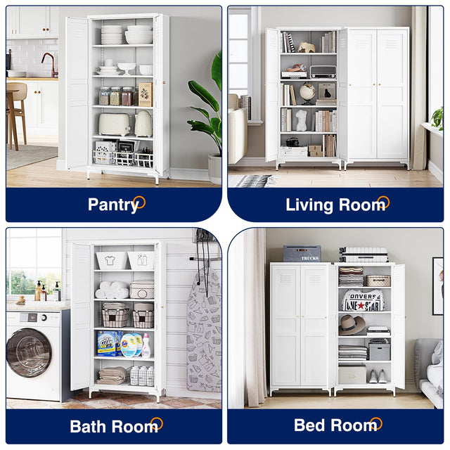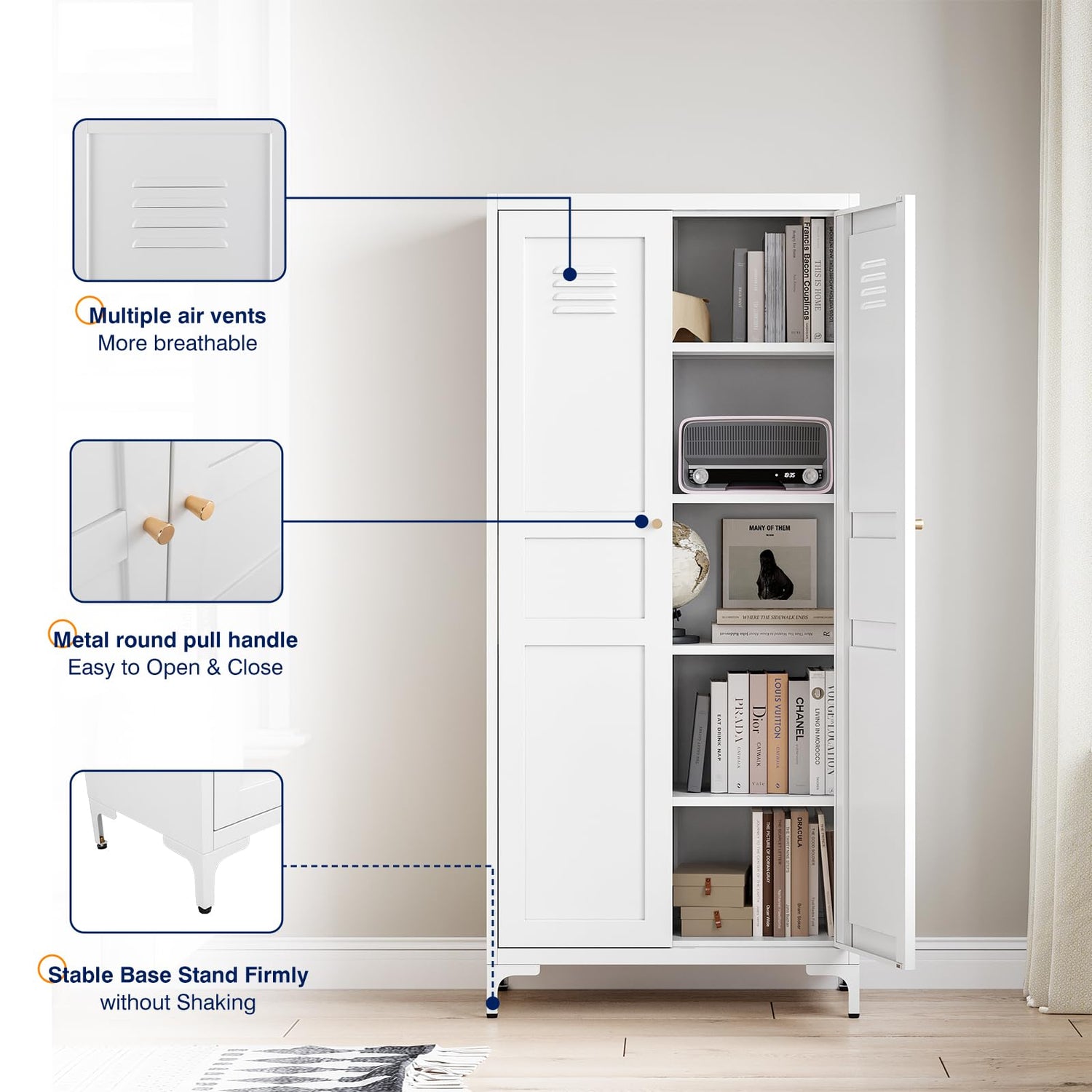 Metal Storage Cabinet with 2 Doors and 4 Adjustable Shelves - 61" White Locking