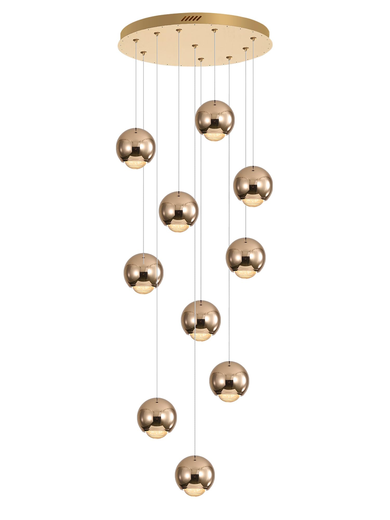 10-Light LED Staircase Gold Chandelier Crystal Ceiling Lights Large Chandeliers for High