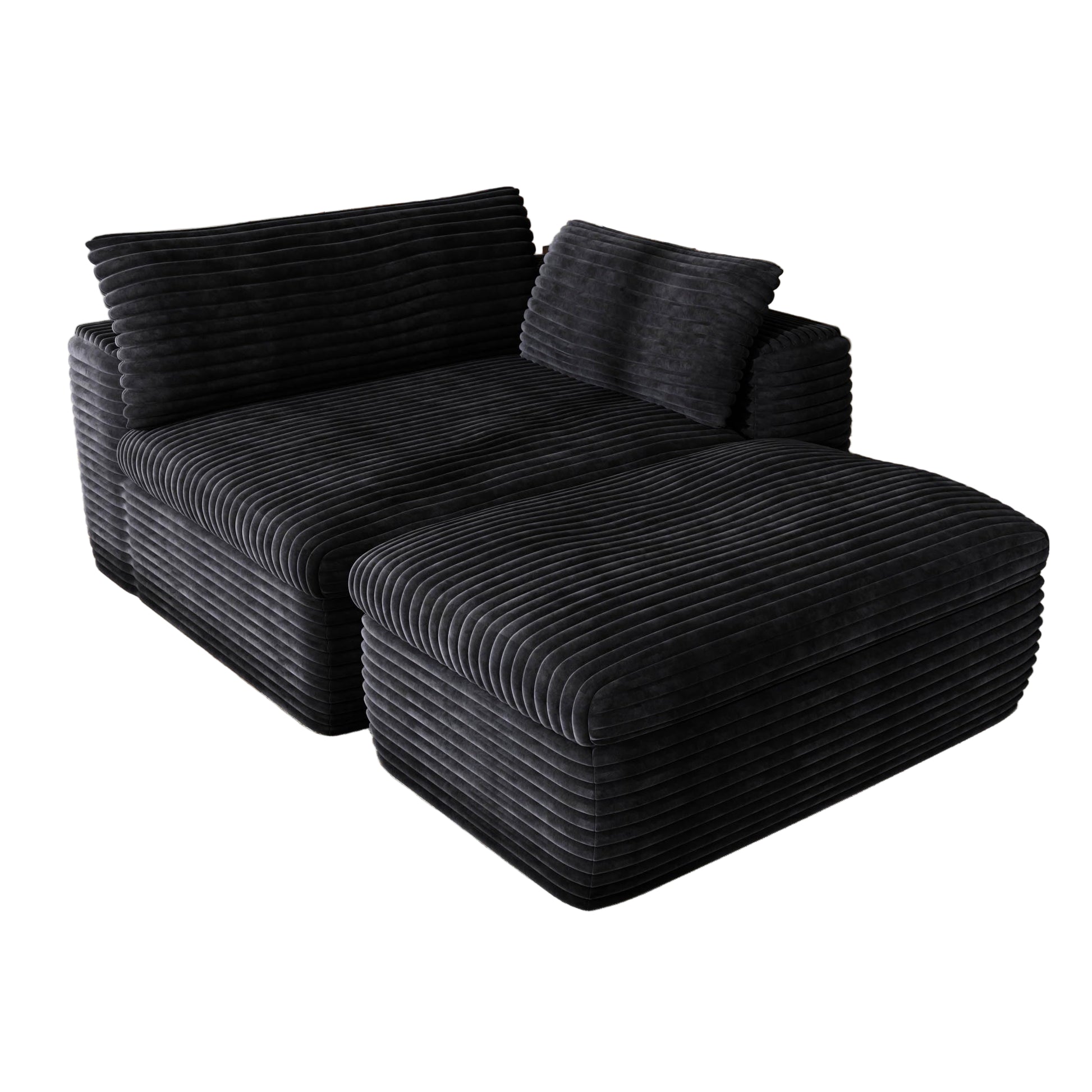 85'' Living Room Sectional Couch with Double Layer Black Plush Corduroy Fabric