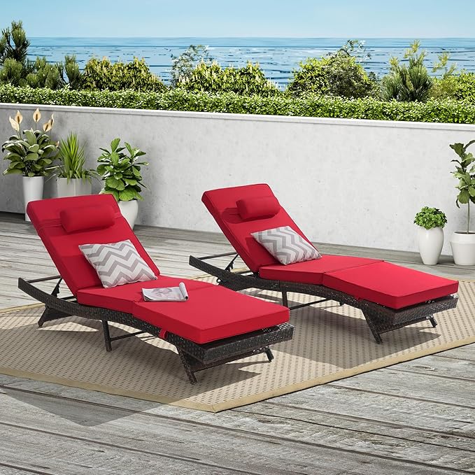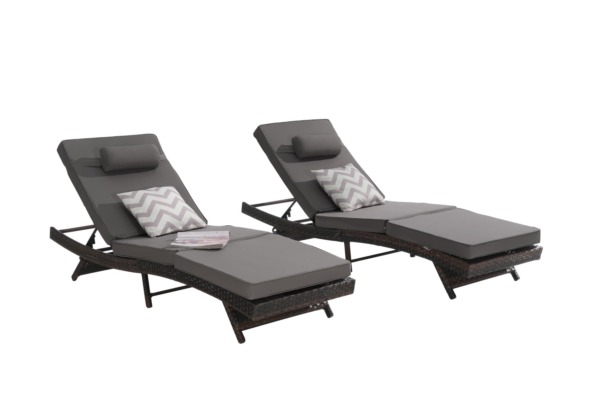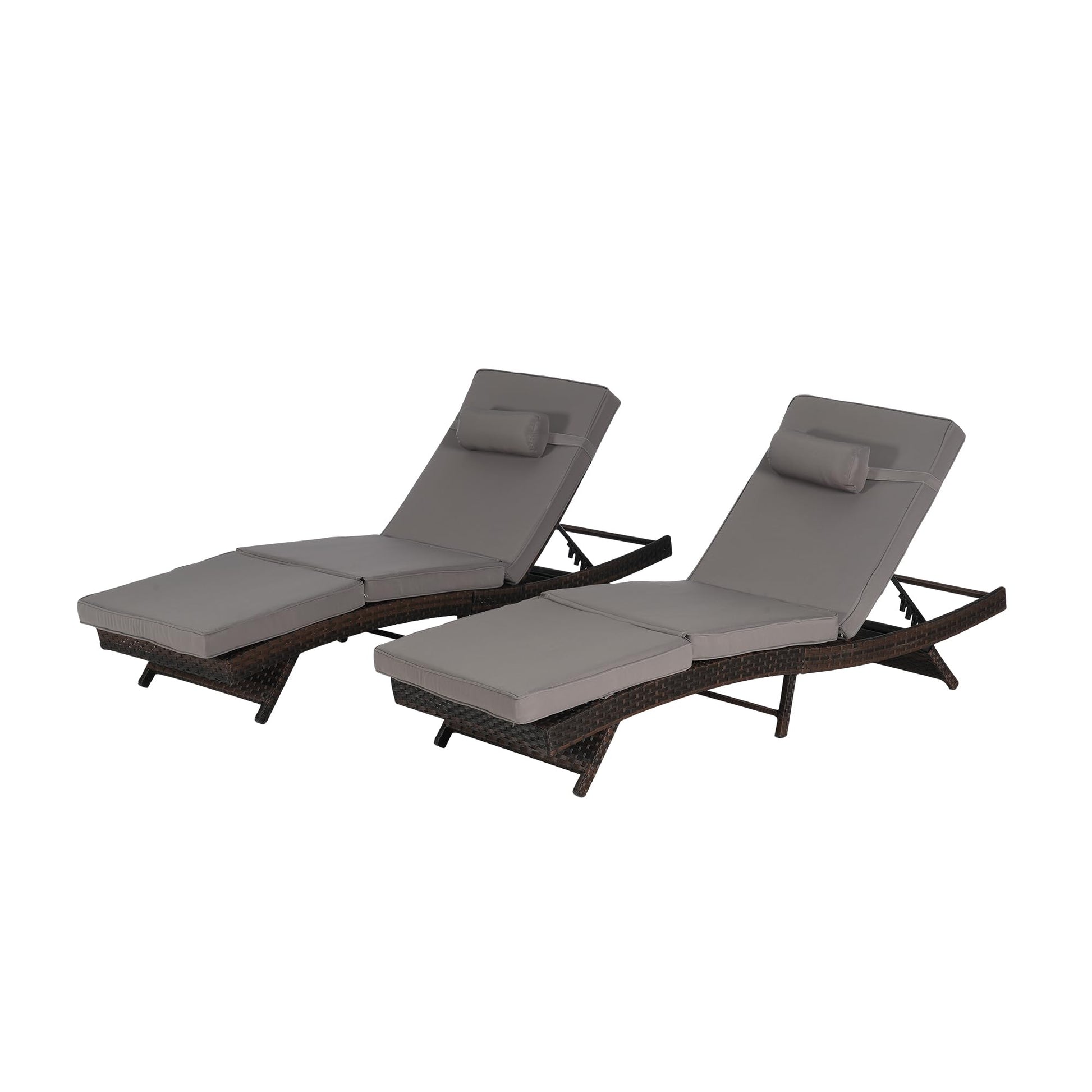 Outdoor Wicker Long Reclining Chair Set of 2 with Cushion