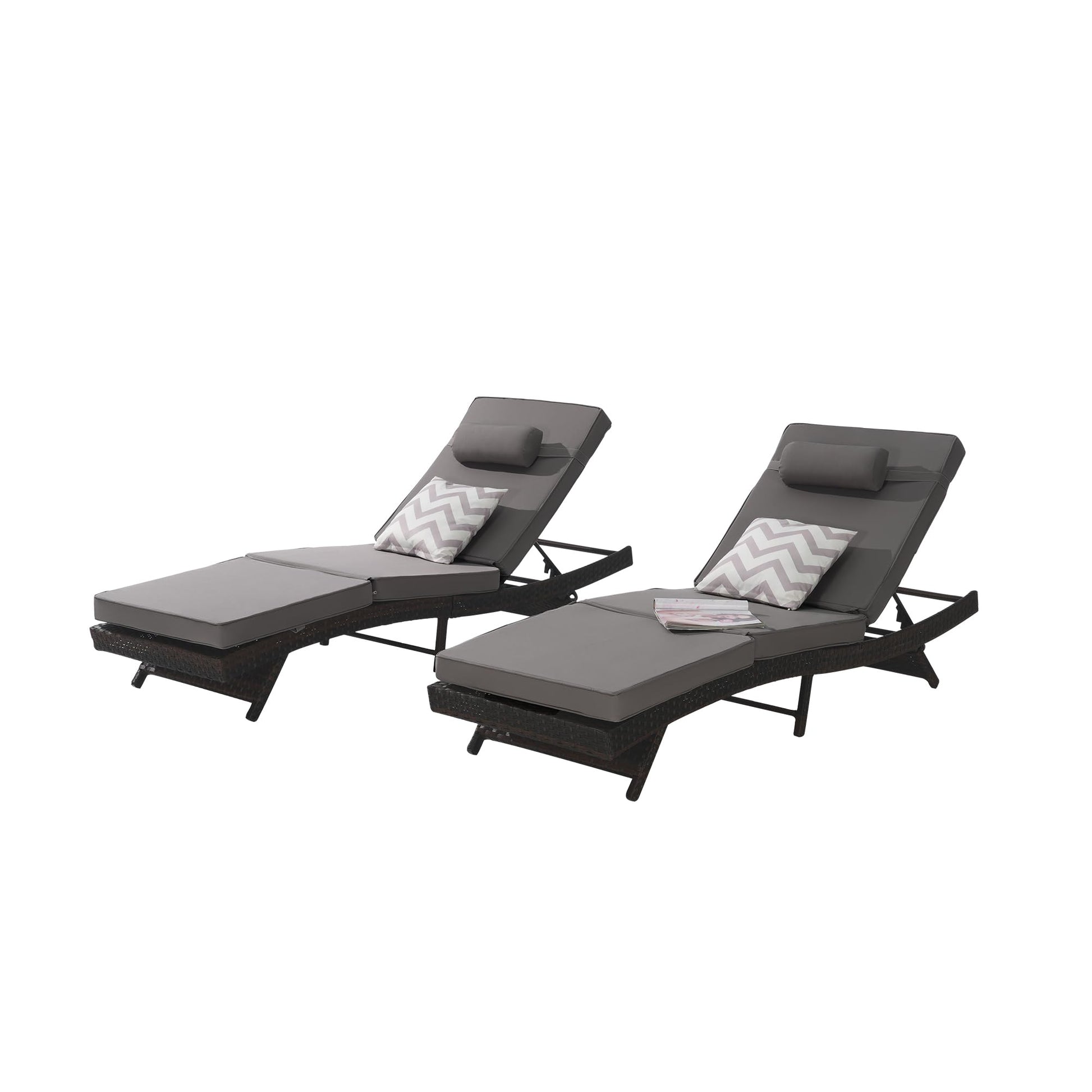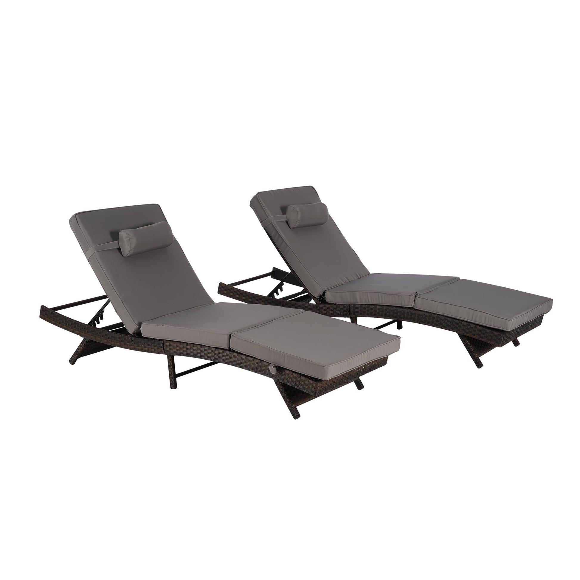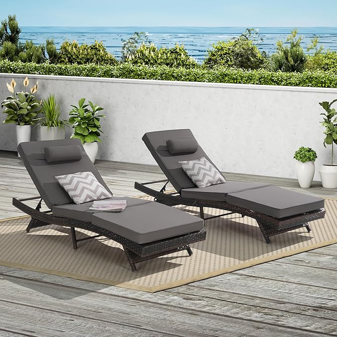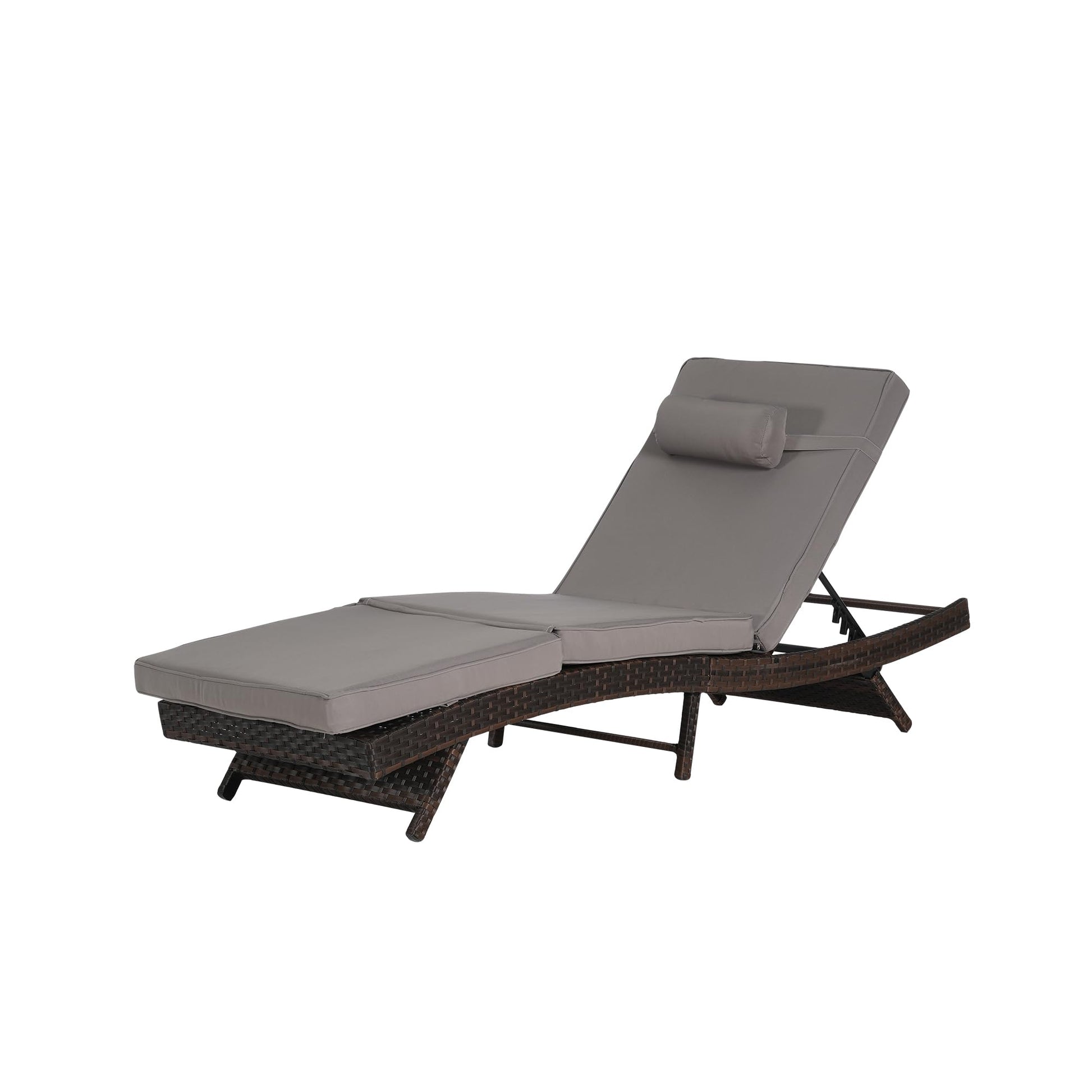 Outdoor Wicker Long Reclining Chair Set of 2 with Cushion