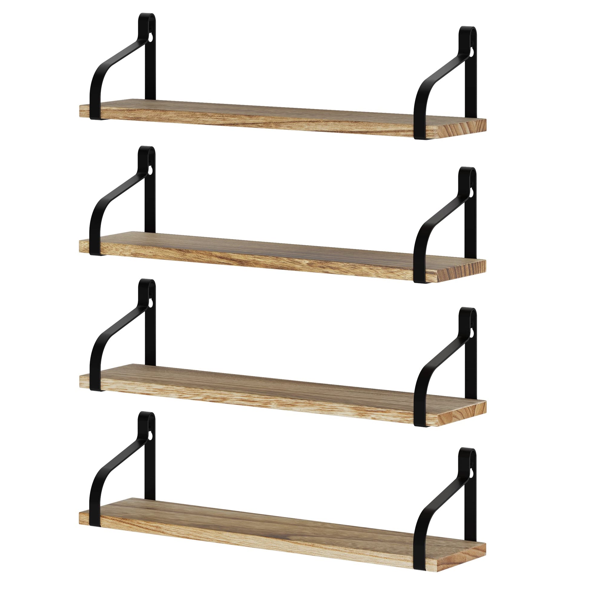 - Versatile Design: Your wall decorations for kitchen is not the only place for these decorative wall shelves. You can use your set of 4 wood shelf with black brackets as bookshelves in your living room, or in your home office to create extra storage space or in your bathroom as a bathroom storage or over the toilet shelf.