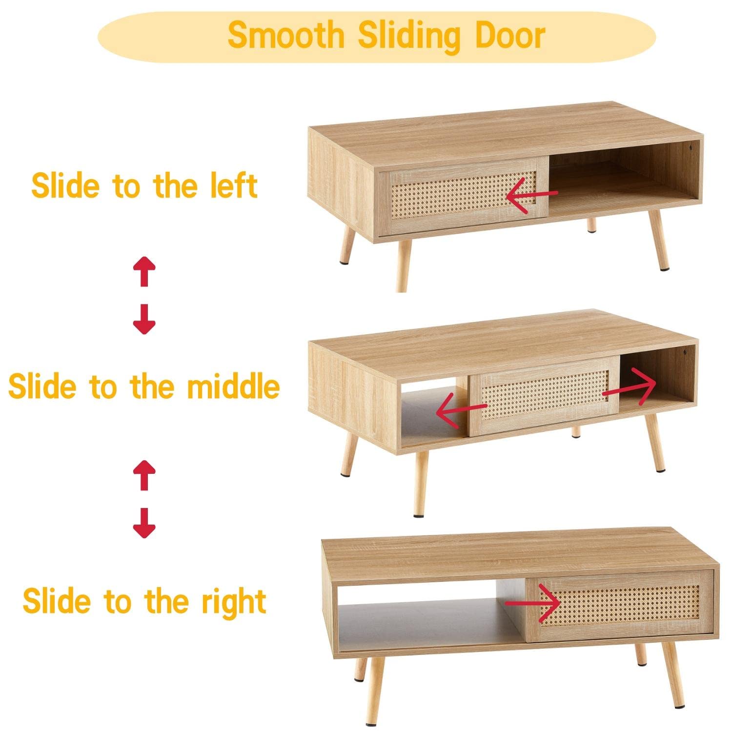 The coffee table is crafted with a sturdy wooden frame and finished with a woven rattan accent, bringing a touch of boho charm and airy elegance to your space. Its generous tabletop provides ample room for beverages, décor, or magazines, while the natural materials create a relaxed, cozy atmosphere.
