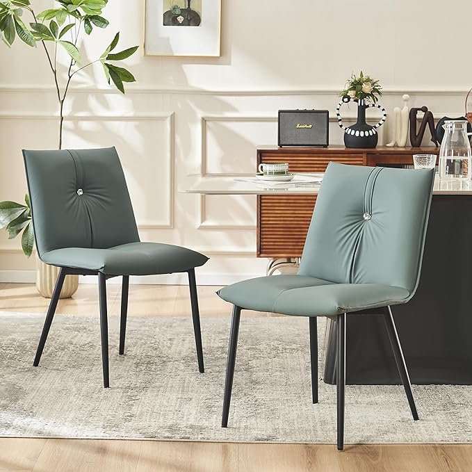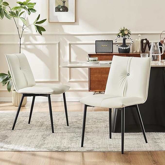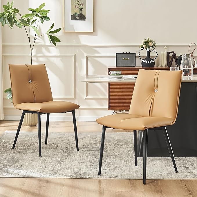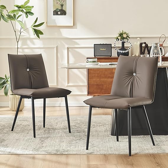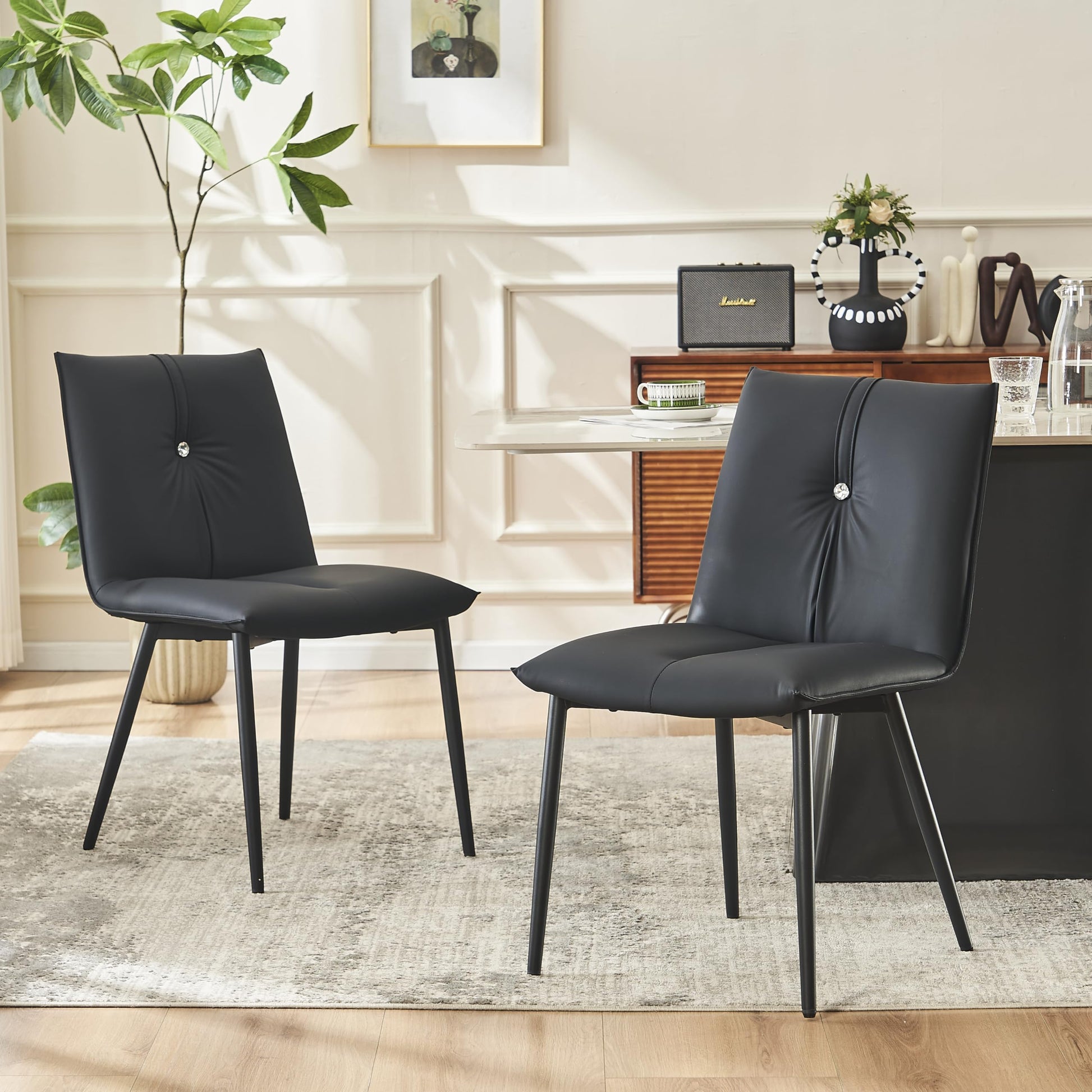 Dining Chairs Set of 2,Faux Leather Upholstered Chairs with Metal Feet