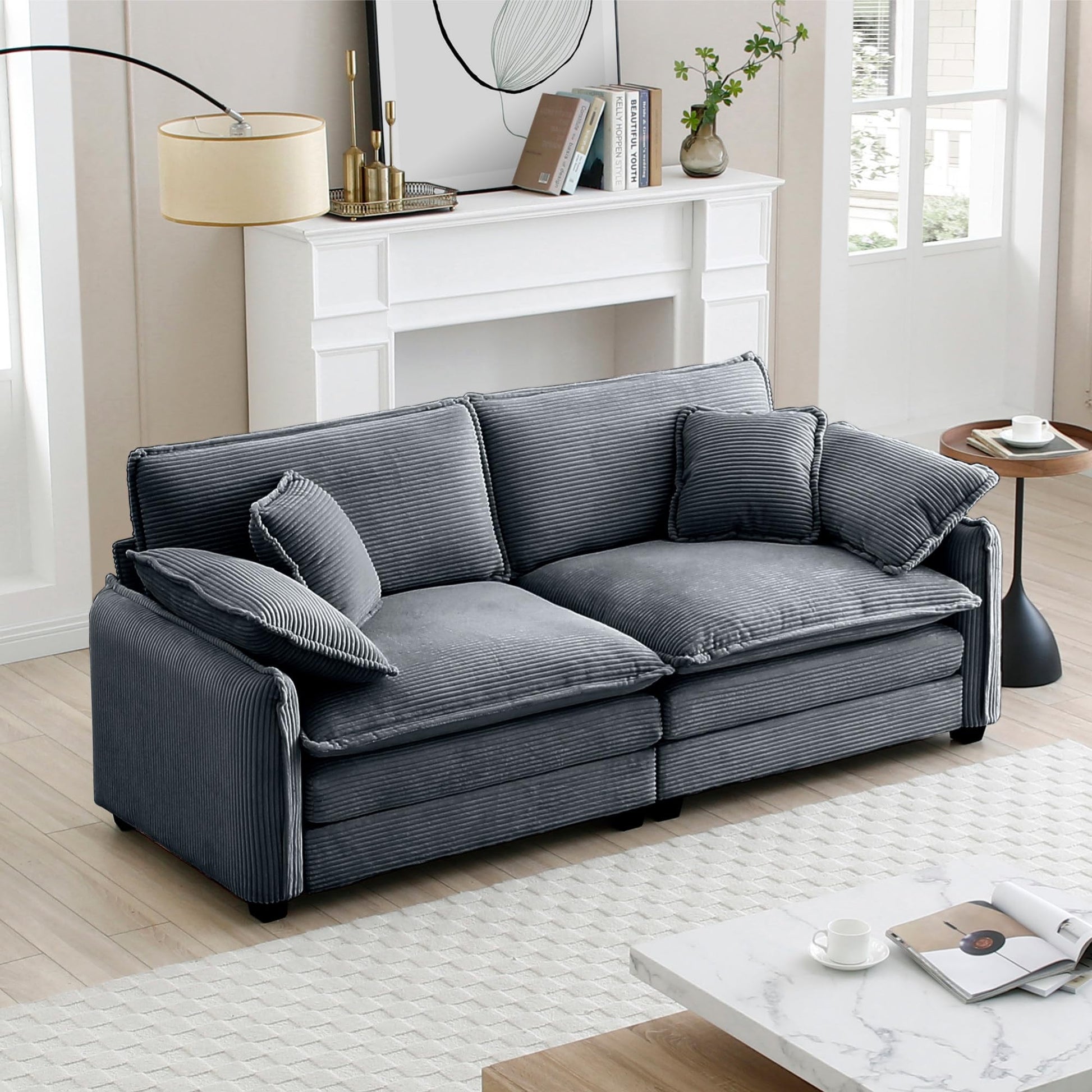 - Overall dimension is 81 "L x 34.25 "W x 33.85 "H. Ideal for spaces such as bedrooms, living rooms, apartments, or reception rooms, the sophisticated modern style with high-end corduroy fabric brings a stylish and luxurious décor to your space.