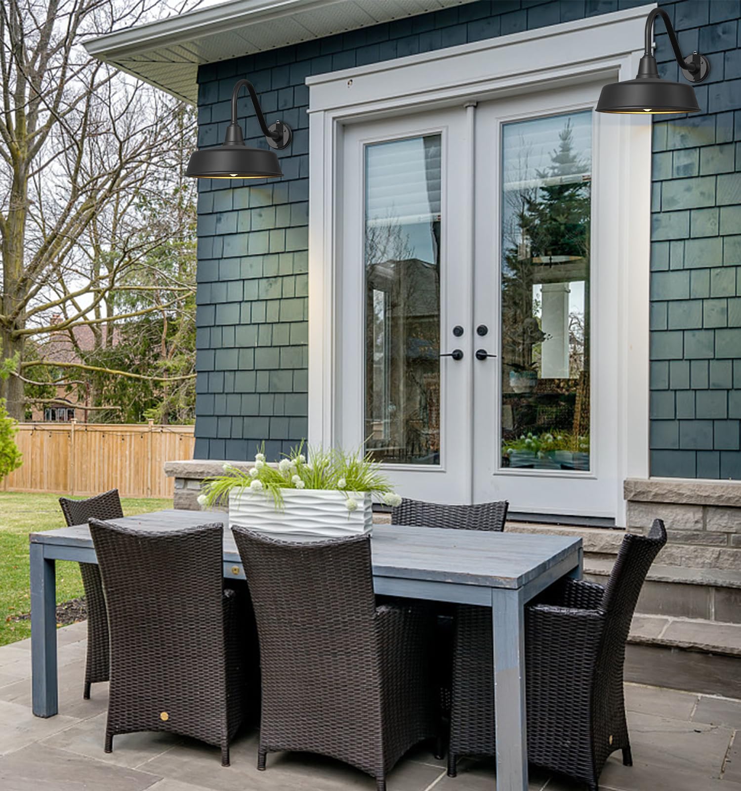 18 Inch Large Dusk to Dawn Outdoor Gooseneck Barn Lights, Classic Black Farmhouse