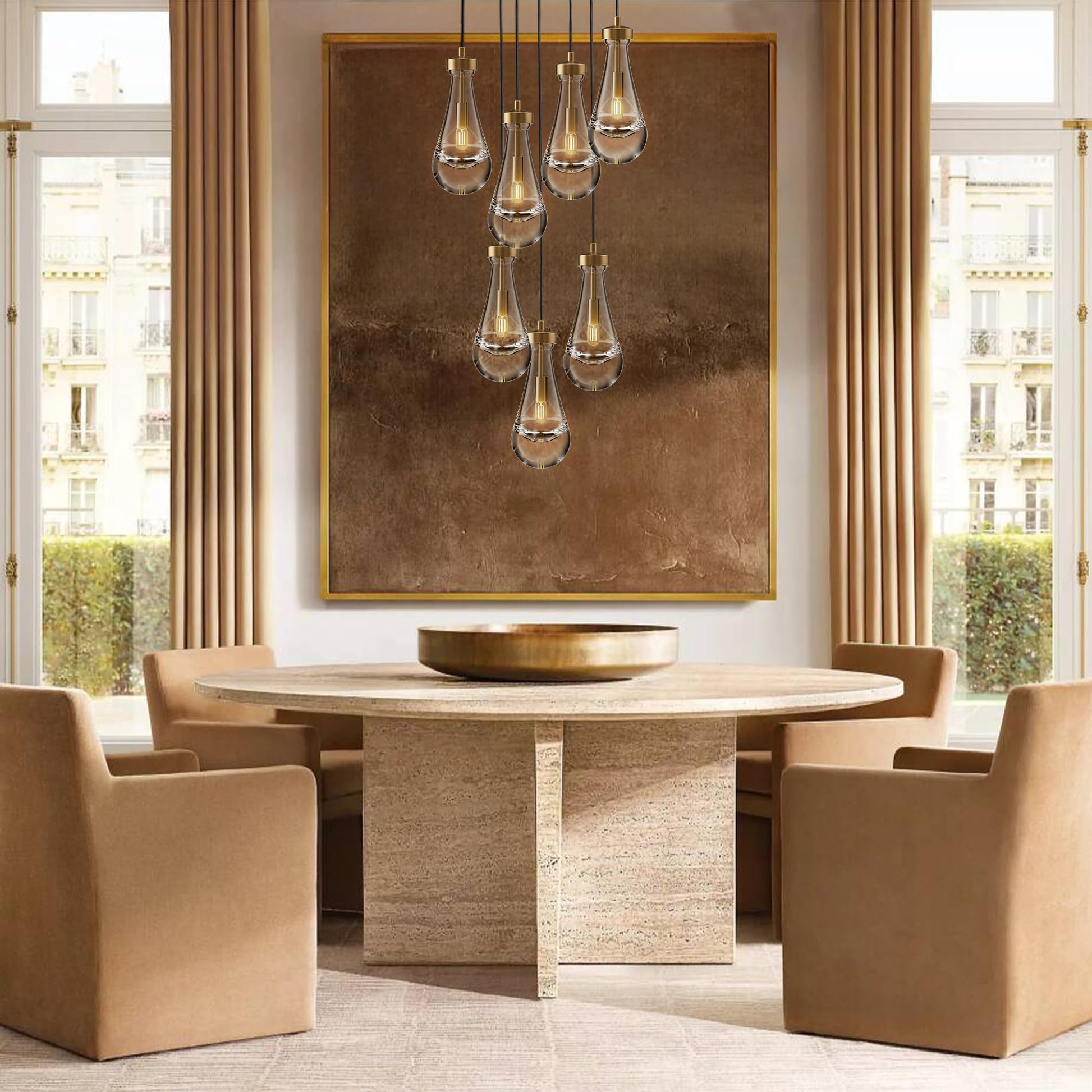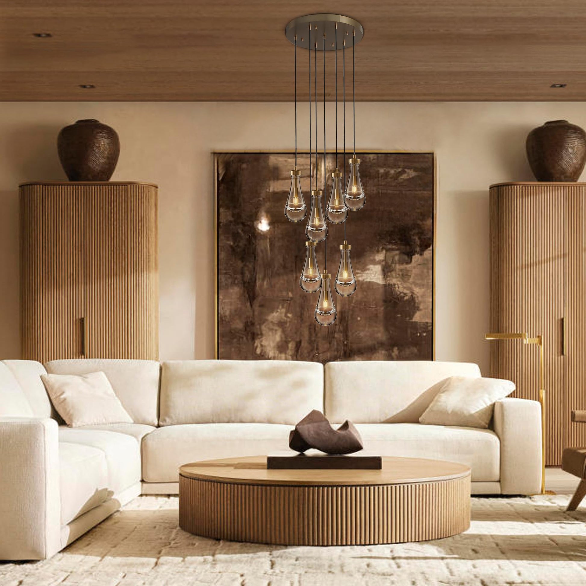 - Featured shape: The raindrop shape inspired by nature makes this chandelier look like the dawn dew. The classic brass color makes the look more noble, and the light emanating from the teardrop is even more relaxing. This is definitely the most appropriate chandelier for living room, dining room, kitchen island, stairwell, study room, bedroom, hotel lobby, bar, etc.