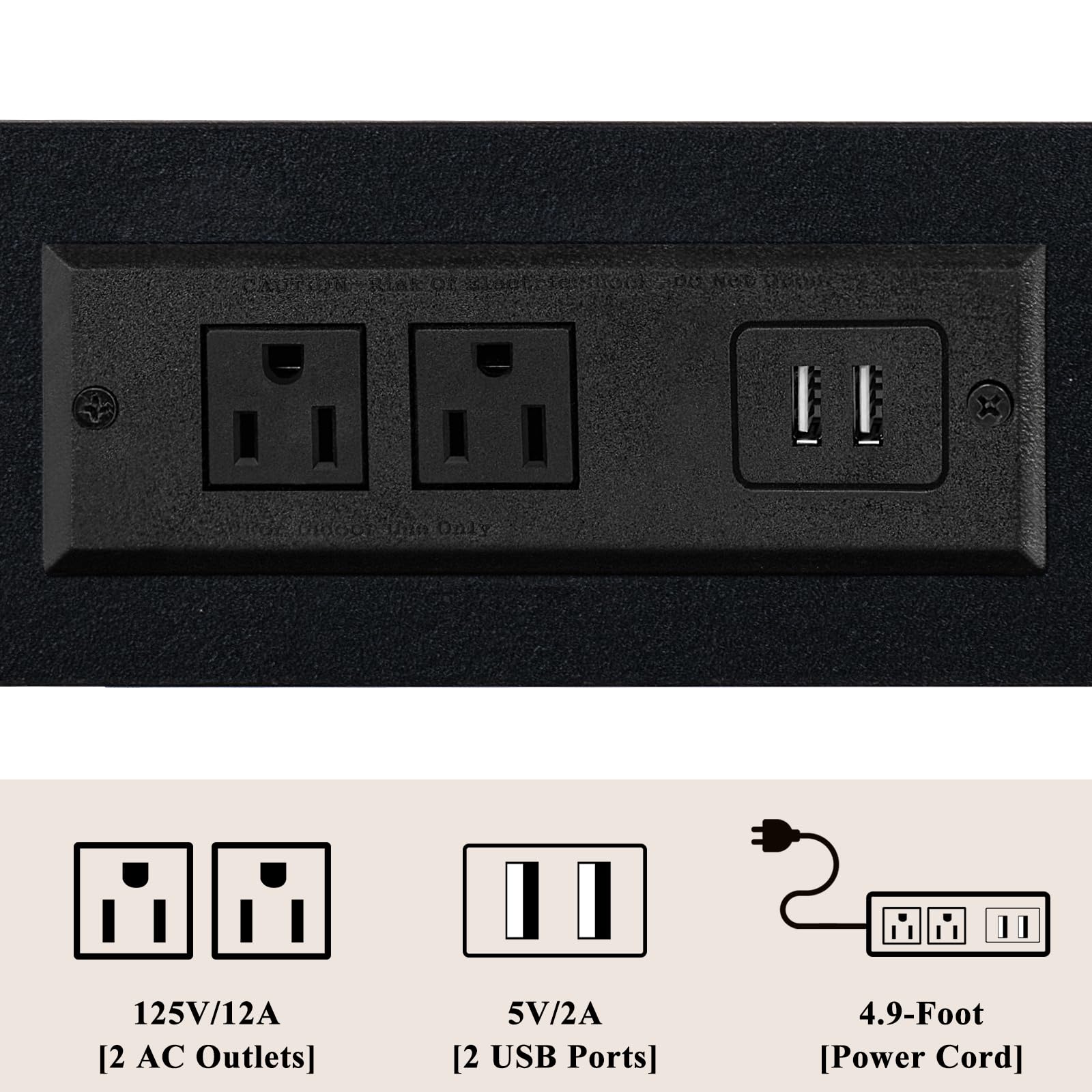 - Side Table with Charging Station: No more searching around for an electrical outlet! This narrow side table comes with 1 AC outlet, 2 USB ports and a 4.9-foot extension cord, so you can easily charge your phone, laptop, tablet, lamp and other devices.