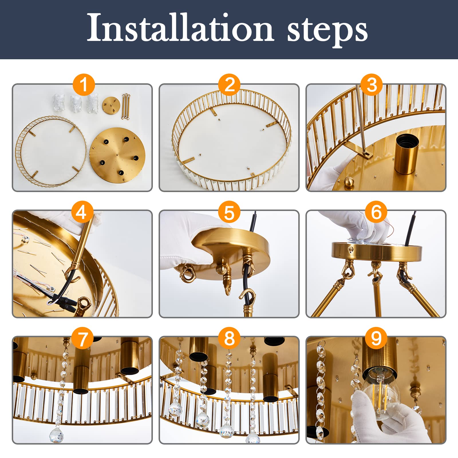 - Ceiling Lamp Installation: Assembly required (include hanging the crystal strings to the plate), but easy to install and all mounting hardware and a detailed mounting instructional manual included.