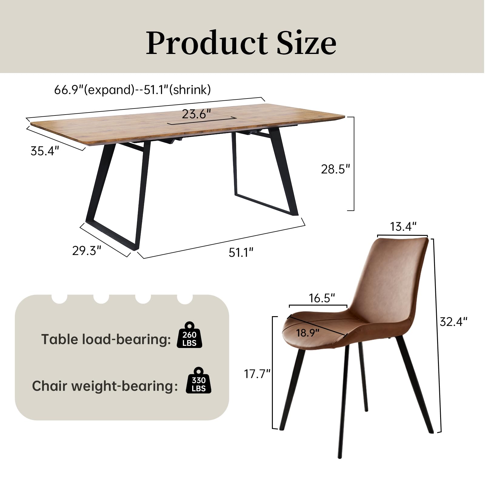 - Quick Setup And Easy To Clean: Necessary Tools And Instructions Included In The Dining Room Set Package. Follow Detailed Instructions To Assemble The Table Easily. Unfolded Dimensions Are 66.9" X 35.4" X 28.5" (L X W X H), And The Space-Saving Table Measures 51.1" X 35.4" X 28.5" (L X W X H).