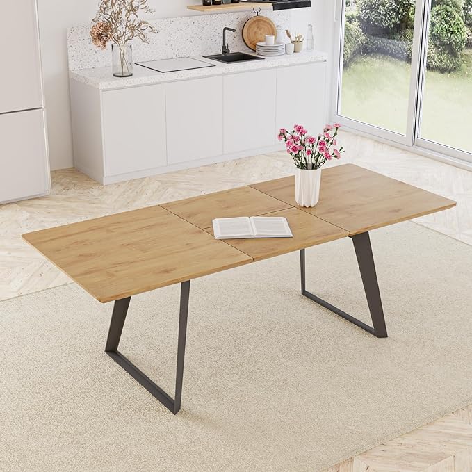 - Expandable design: This expandable dining table can be converted into consoles of different sizes according to your needs, and can also be expanded into a kitchen table with 6*8 seats. The rounded corner design of the extendable table and the double-edged sword technique give smooth, subtle and beautiful edges. Curved lines can protect and care for your family and prevent chafing.