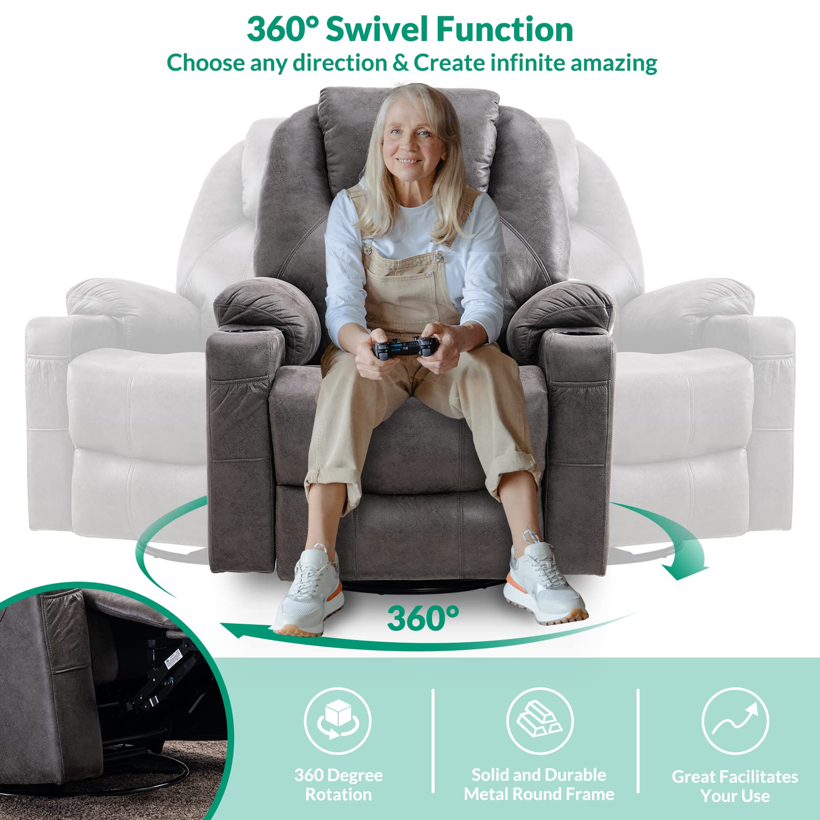 - 360° Swivel & Rocking Motion: Find the perfect position with smooth gliding and full swivel range. Reclines from 90°–150° via pull handle. (Note: Recline position is not lockable.)