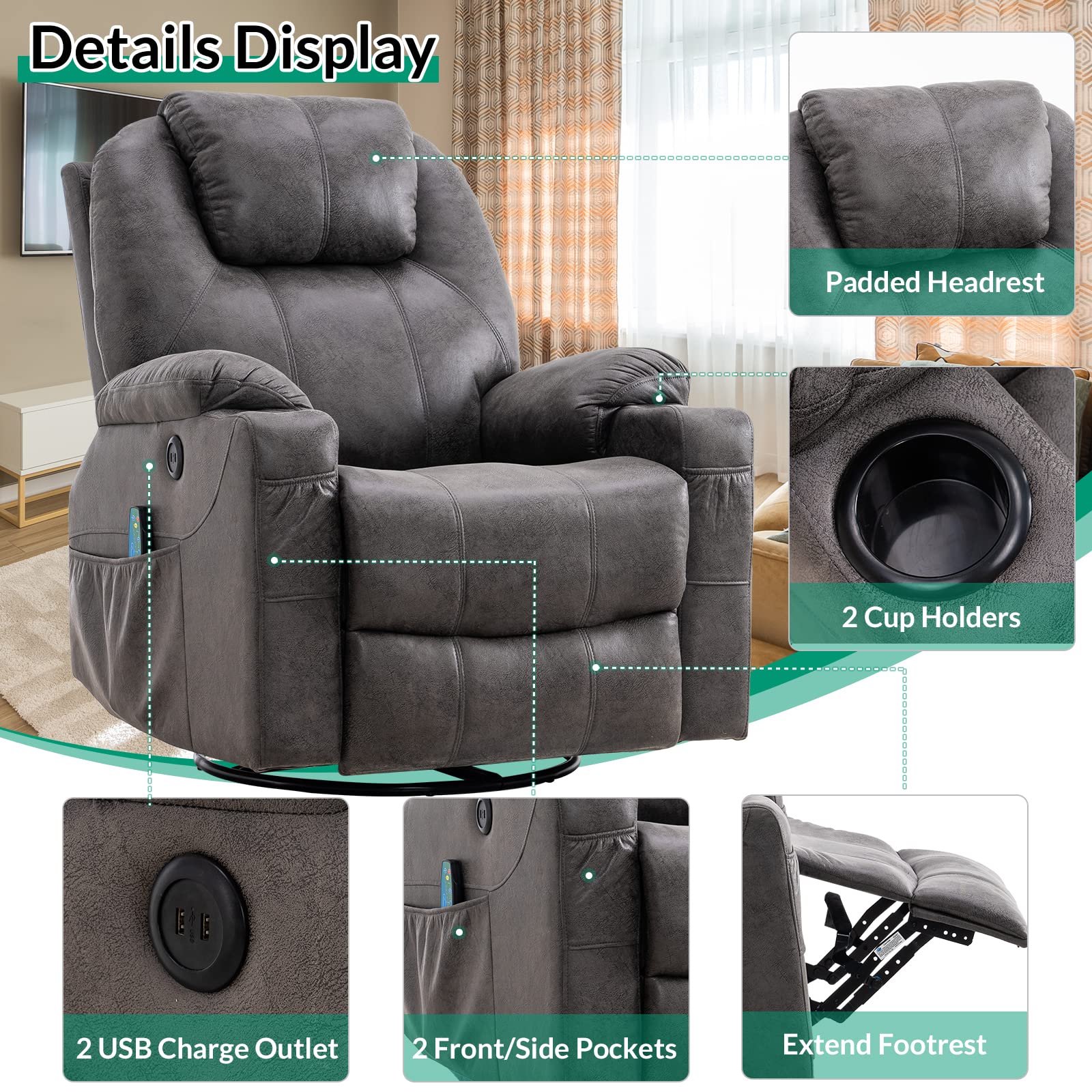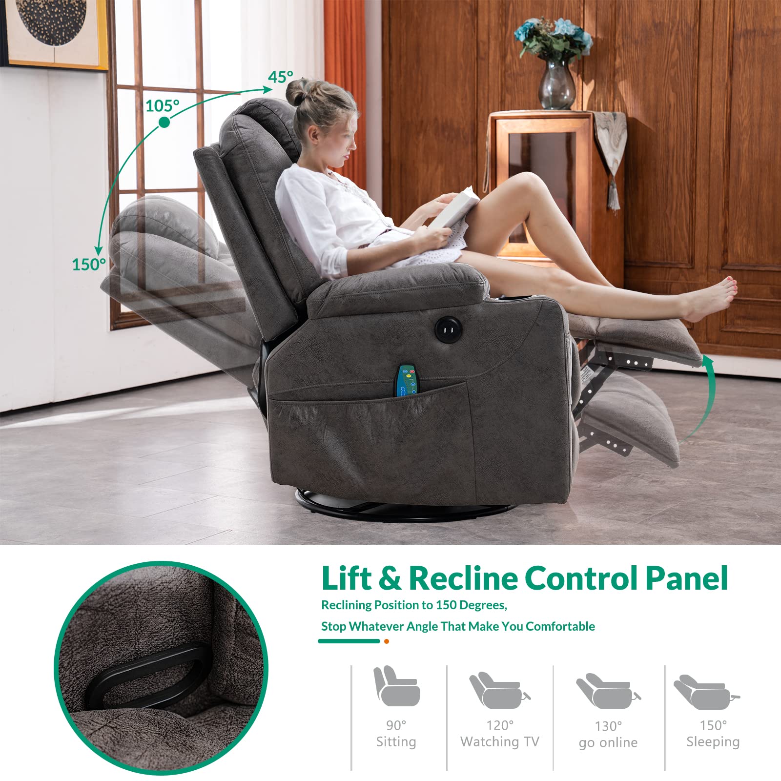 ZenLuxe Swivel Glider Recliner – Massage, Heat, USB, Cup Holders