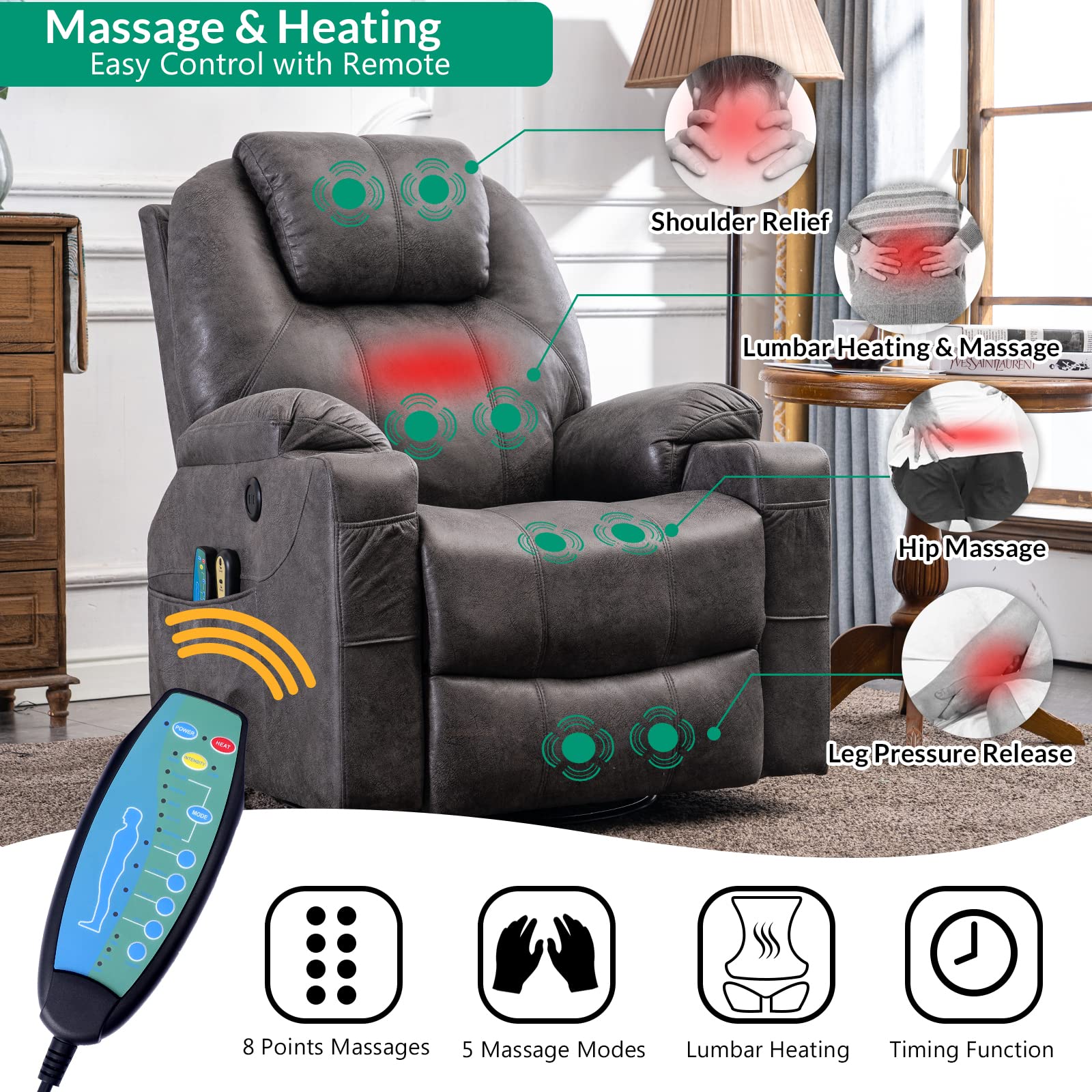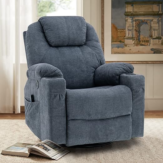 - Special Features: Massage, Heating, USB Charging, 360° Swivel, Gliding, Cup Holders, Adjustable Recline