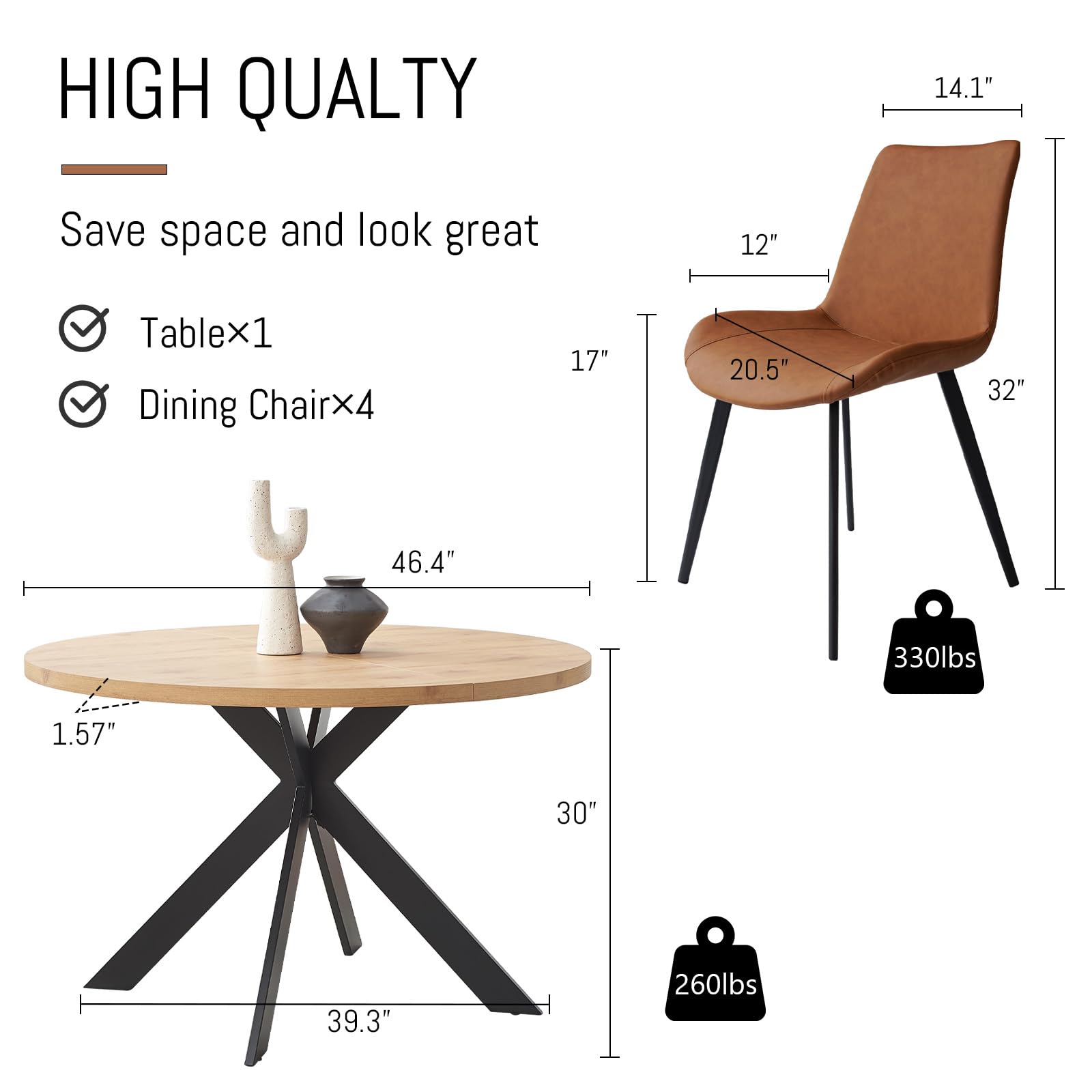 46.4" Round Dining Table Set, Mid Century Modern Round Dining Table for 4-6 Person