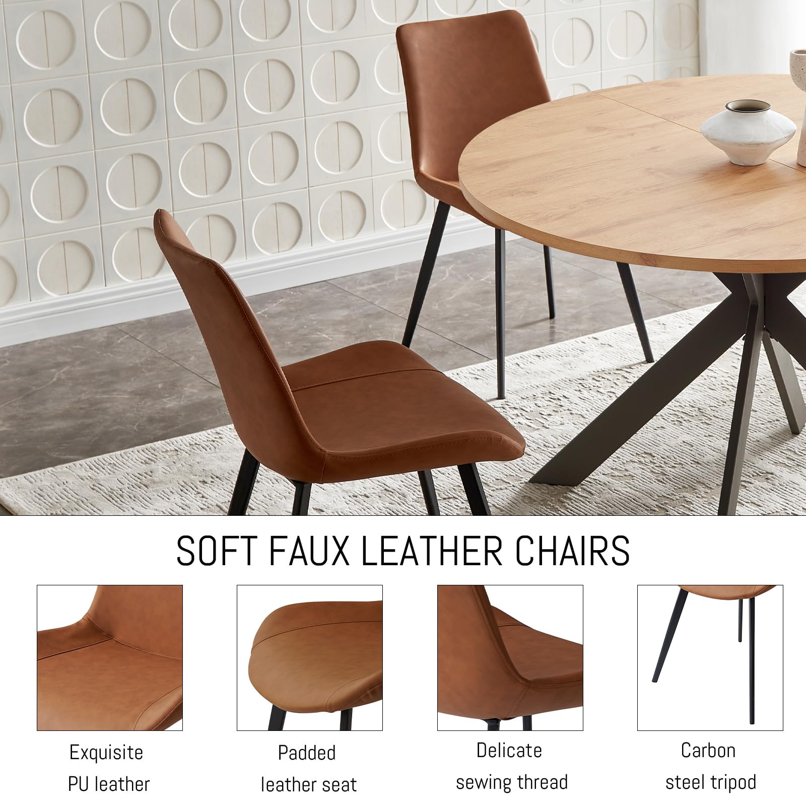 - 4. About Modern Dining Chair: This Leather dining chair is made of high-quality PU leather wrapped with high elastic sponge, which is comfortable and easy to clean. U-shaped cushion relaxes your hip muscles, carbon steel legs will not deform