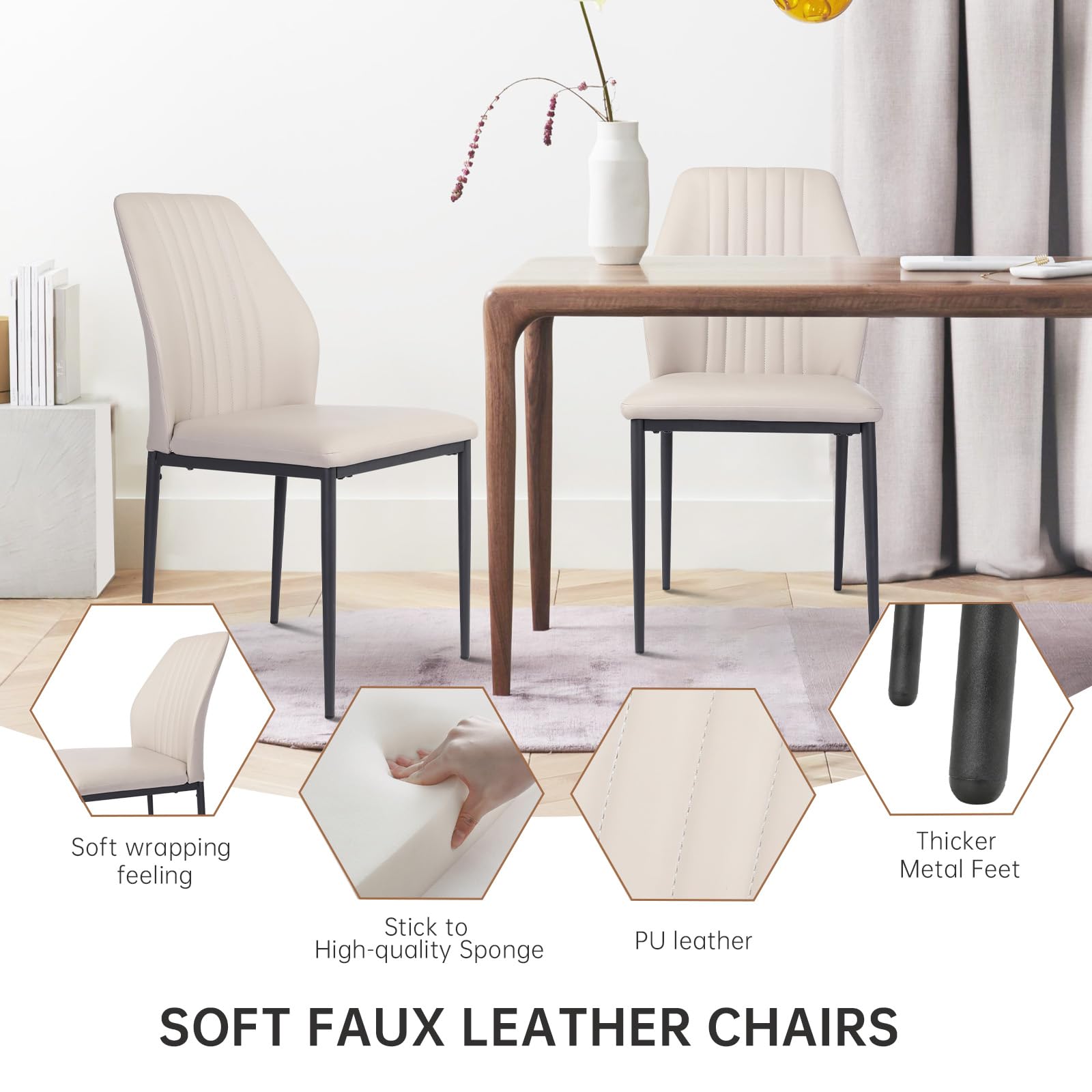 - 4. About Modern Dining Chair: This Leather dining chair is made of high-quality PU leather wrapped with high elastic sponge, which is comfortable and easy to clean. U-shaped cushion relaxes your hip muscles, carbon steel legs will not deform