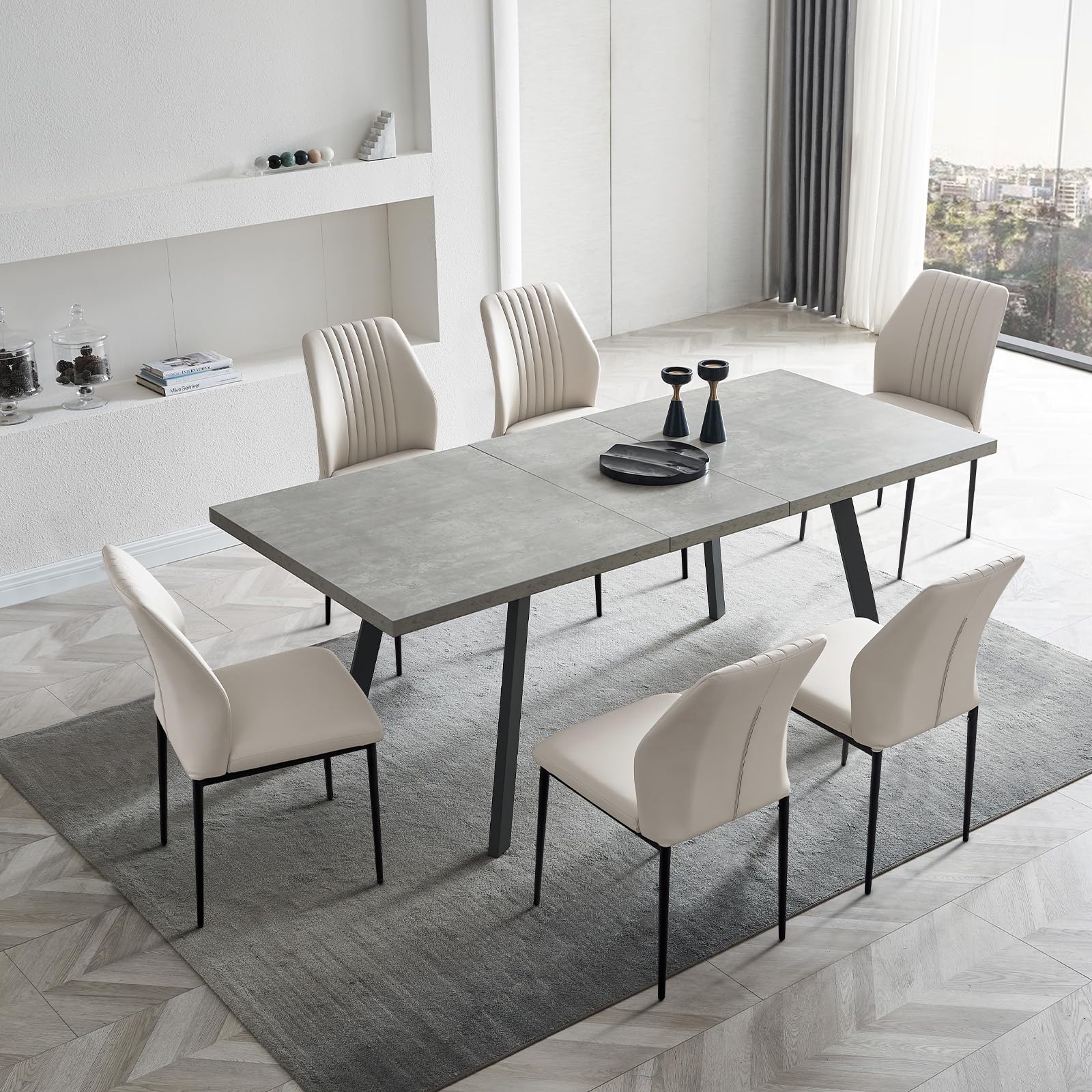 - 1. Modern style: The collision of the Rhine pattern and light grey table brings a mid-century and industrial style to your dining room. match with upholstered chairs for a great aesthetic and functional feel, A good choice for family meeting or parties.