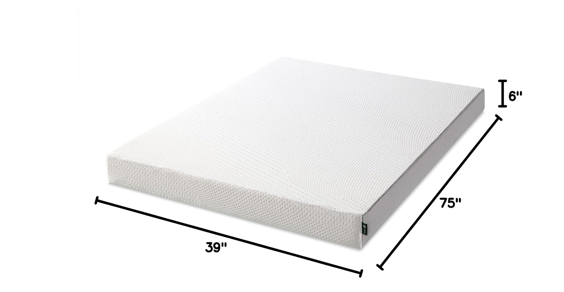 Size Twin Special Feature Pressure Relief, Breathable Fill Material High-Density Foam Product Dimensions 75"L x 39"W x 6"Th Top Style Smooth Top Color White Model Name Cooling Essential Foam Mattress Product Care Instructions Spot Clean Only Cover Material Plush