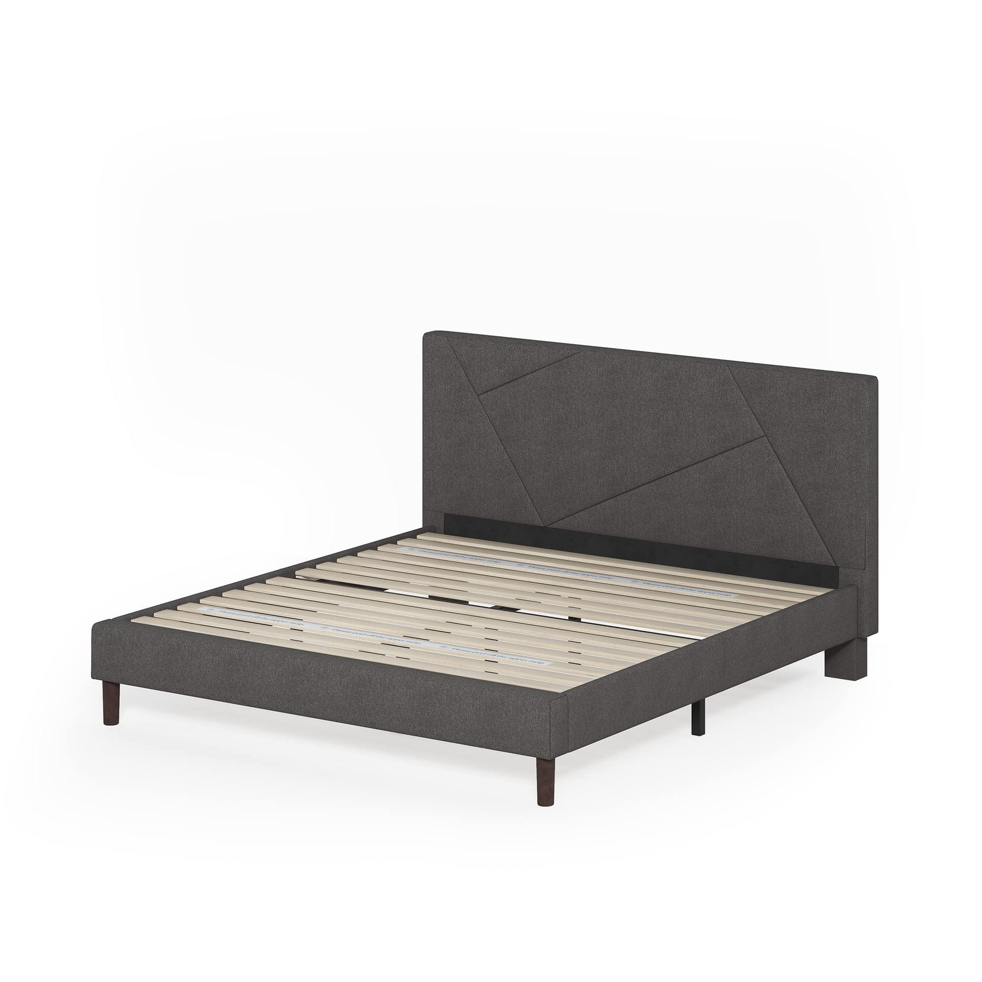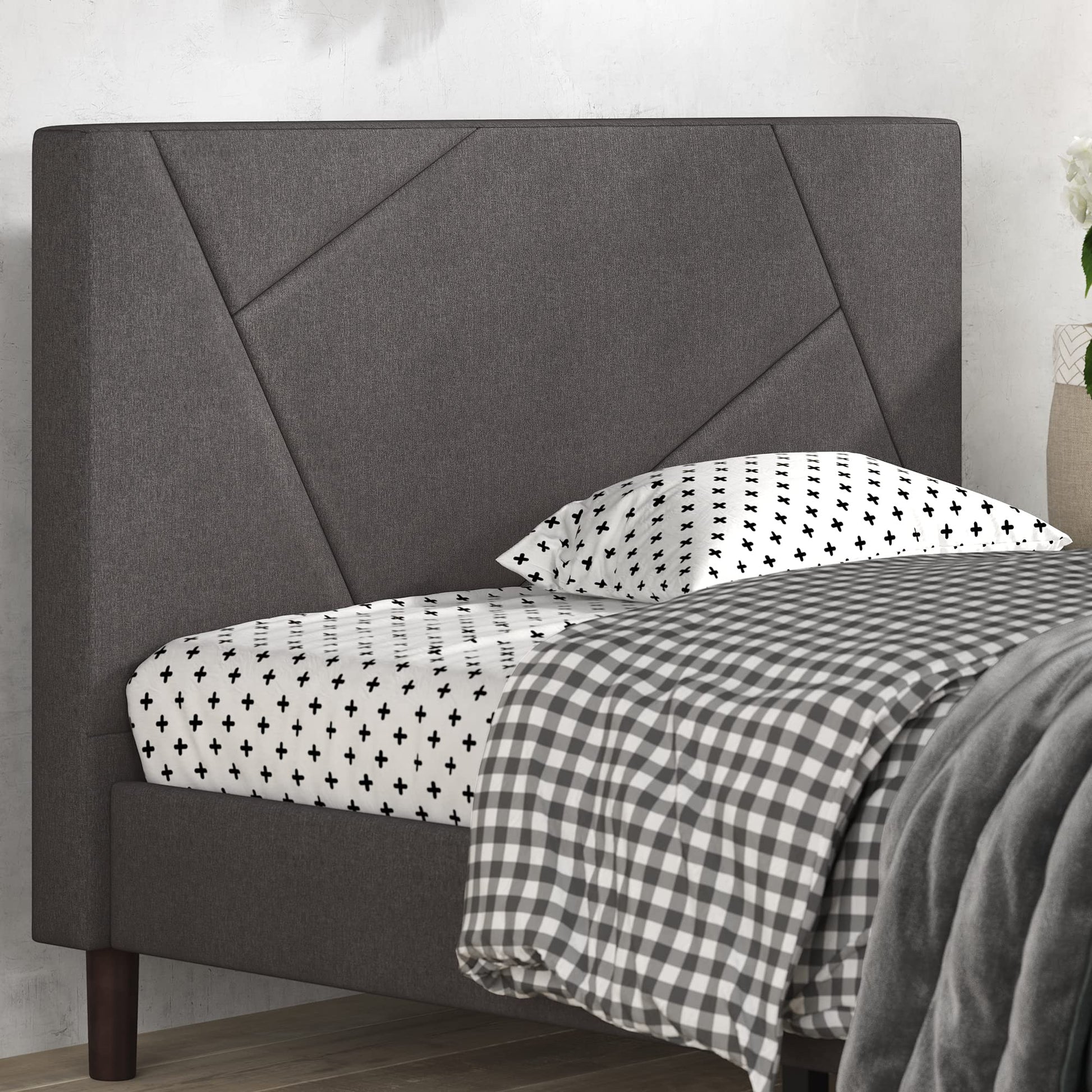 - GEOMETRY THAT MATTERS - With its asymmetrical geometric upholstered headboard, cozy foam padding and muted grey tone, this platform bed puts a modern spin on traditional design