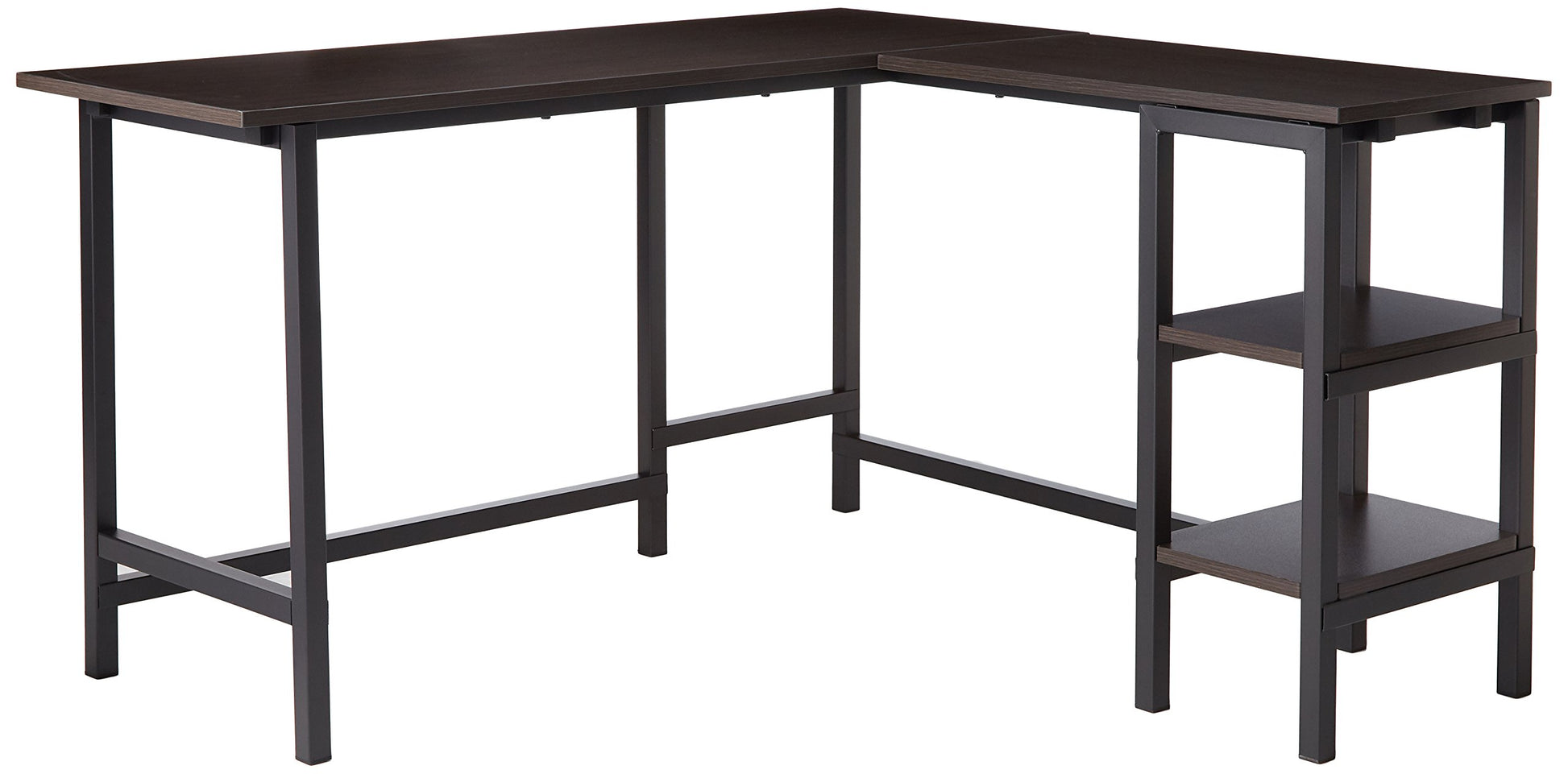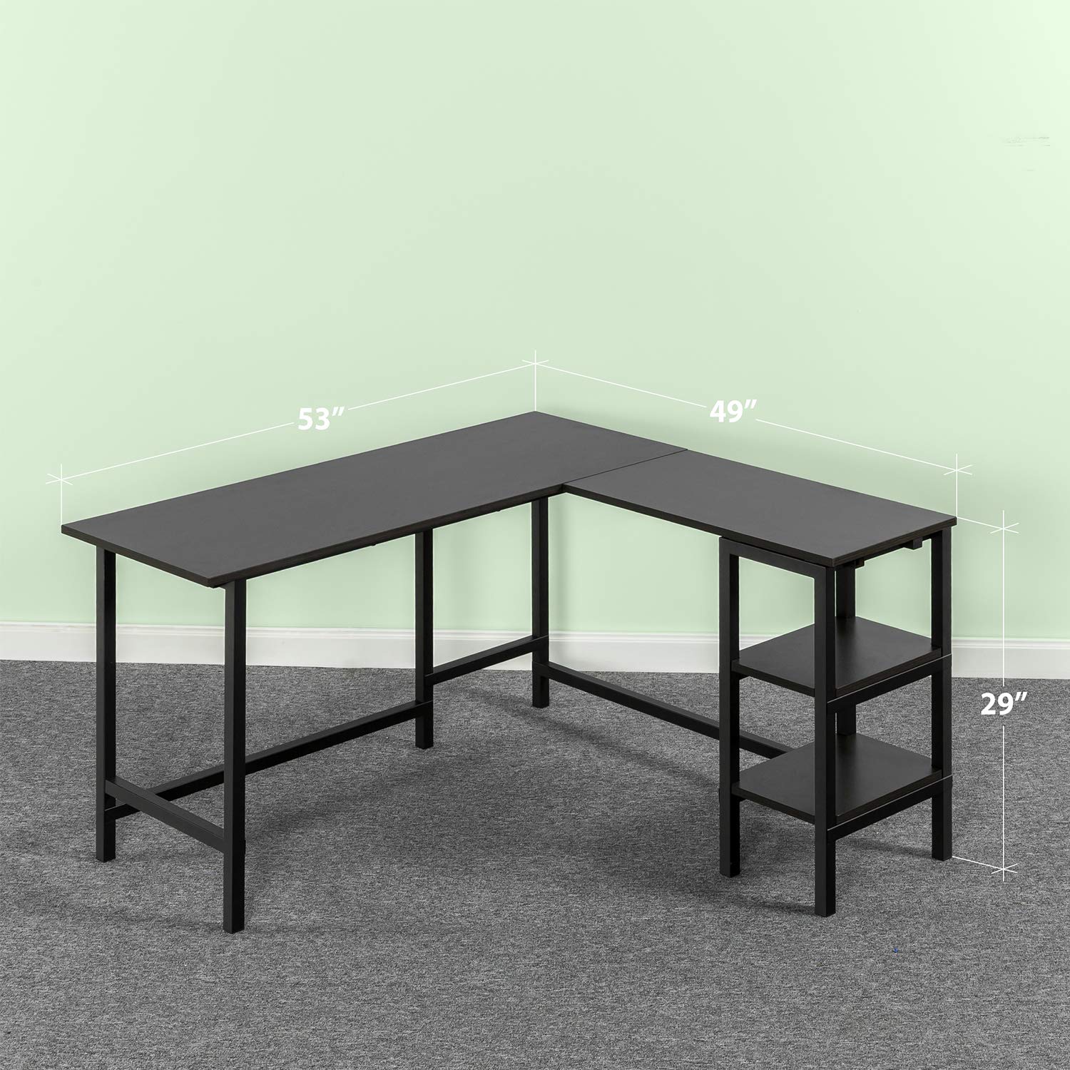 Luke 53 Inch Black Metal Corner Desk with Storage Shelves, L-Shaped Computer Desk