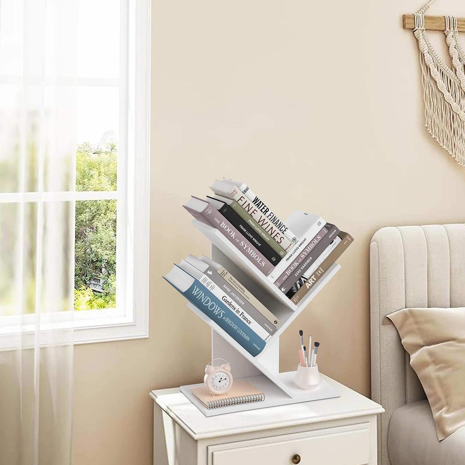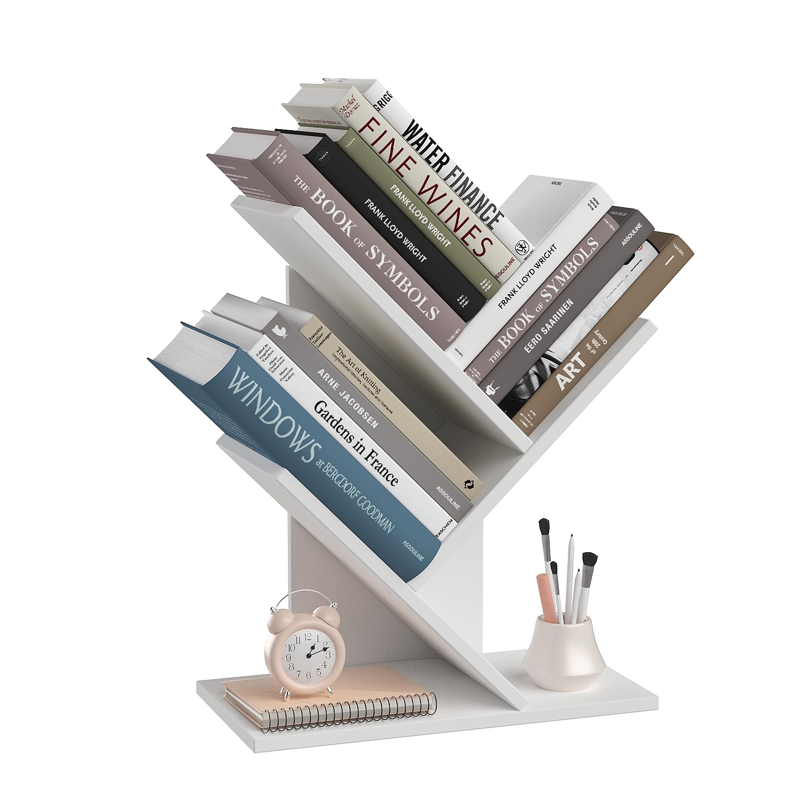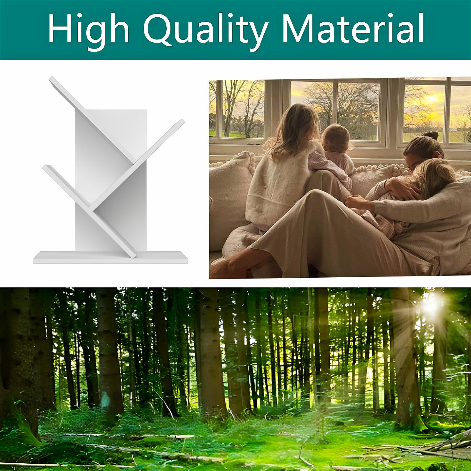 ZRWD Tree Bookshelf, 3-Tier Book Storage Organizer Shelves Floor Standing Bookcase, Wood Storage Rack for Office Home School Shelf Display for Cd/Magazine(White)