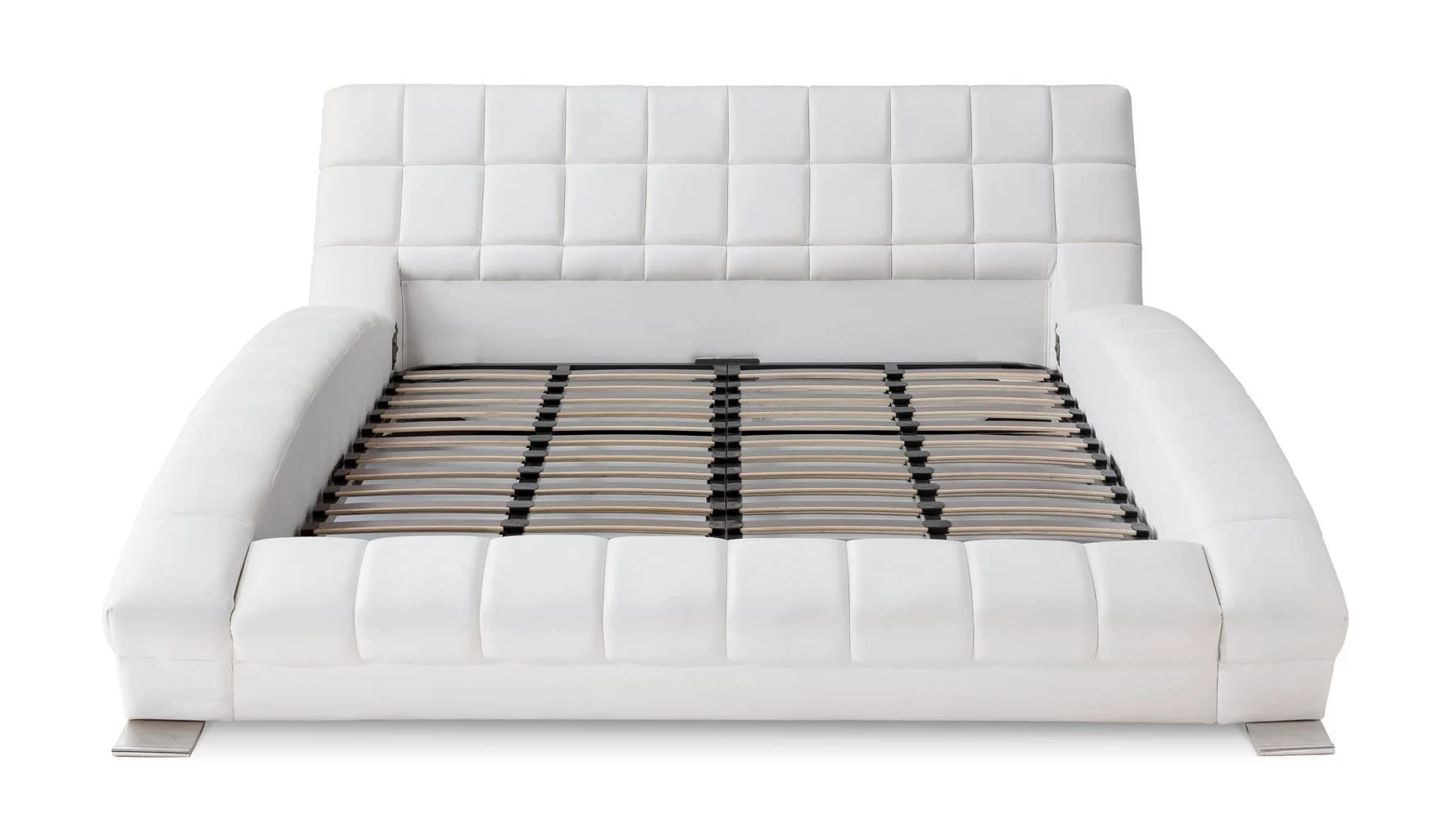 Adonis White Tufted Leather Platform Bed - King