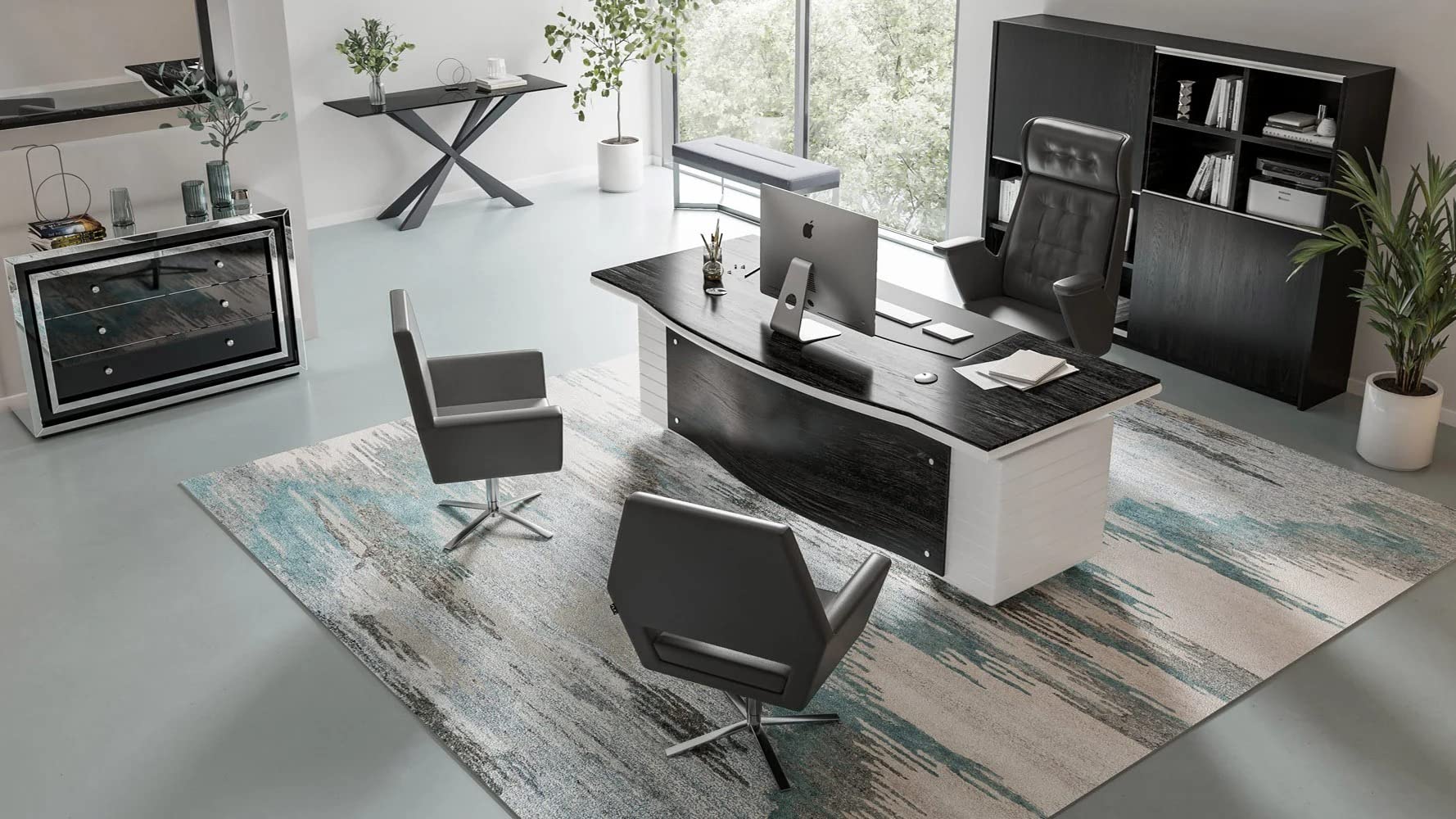 Furniture Modern Kennedy Executive Desk with Silver Accents and Filing Storage