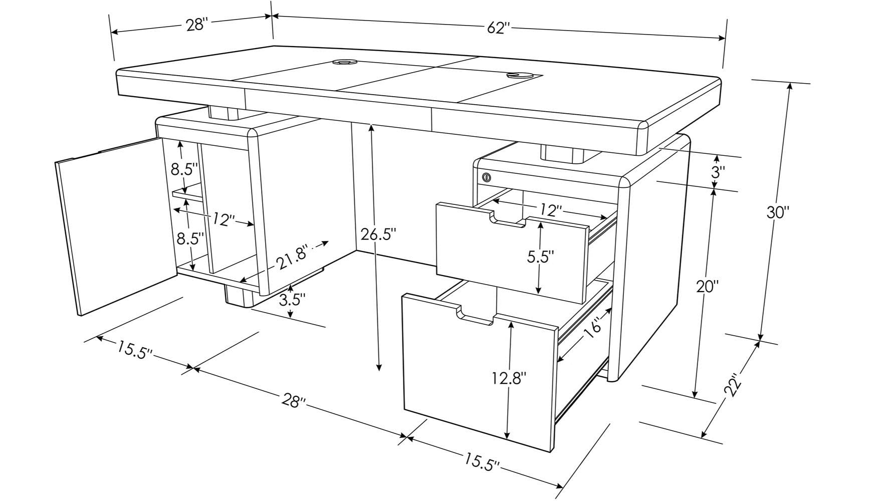 - 2 Locking Drawers with 1 for Letter or Legal Filing