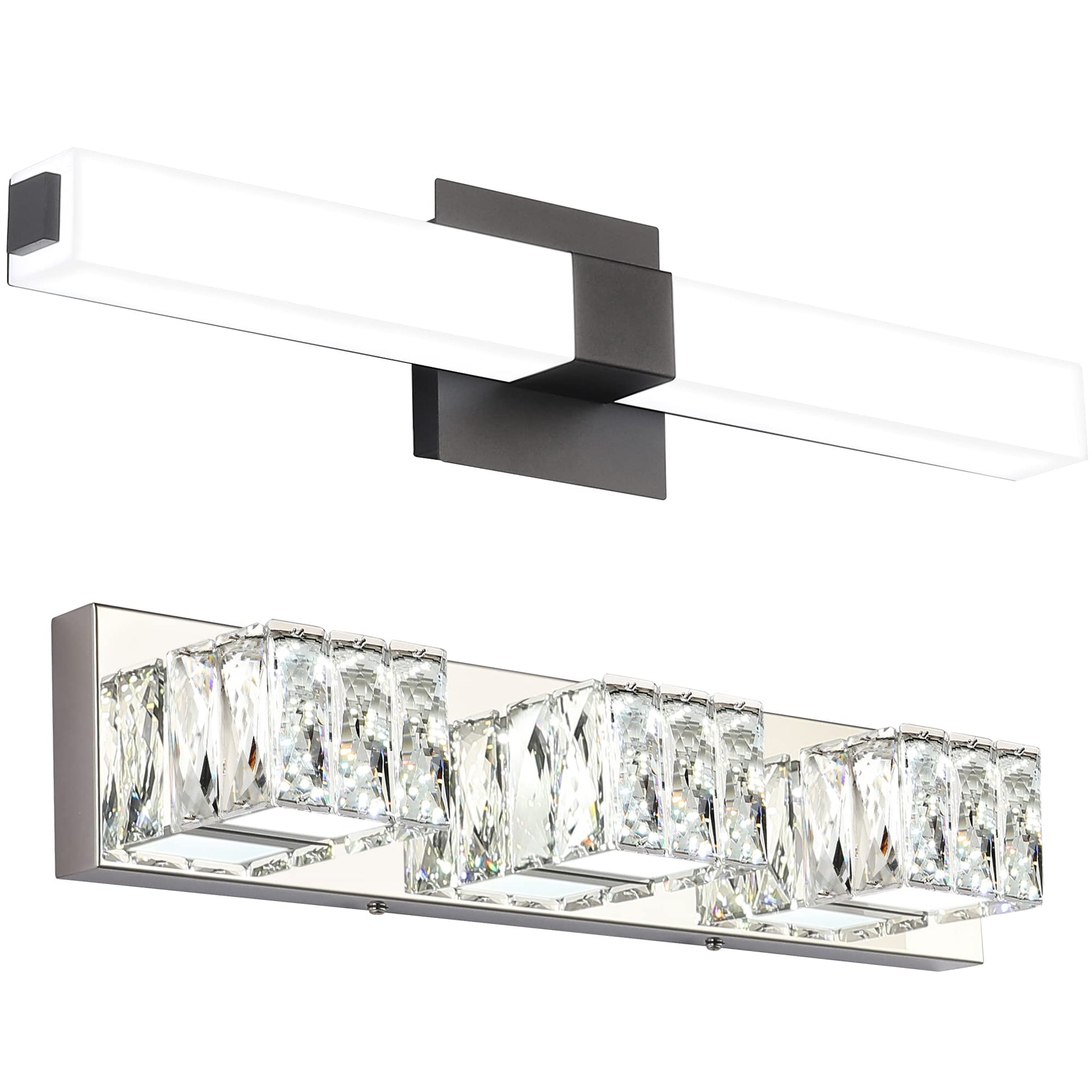 Bundle 24 inch Black Bathroom Lights with Crystal Vanity Light Fixtures 3 Light