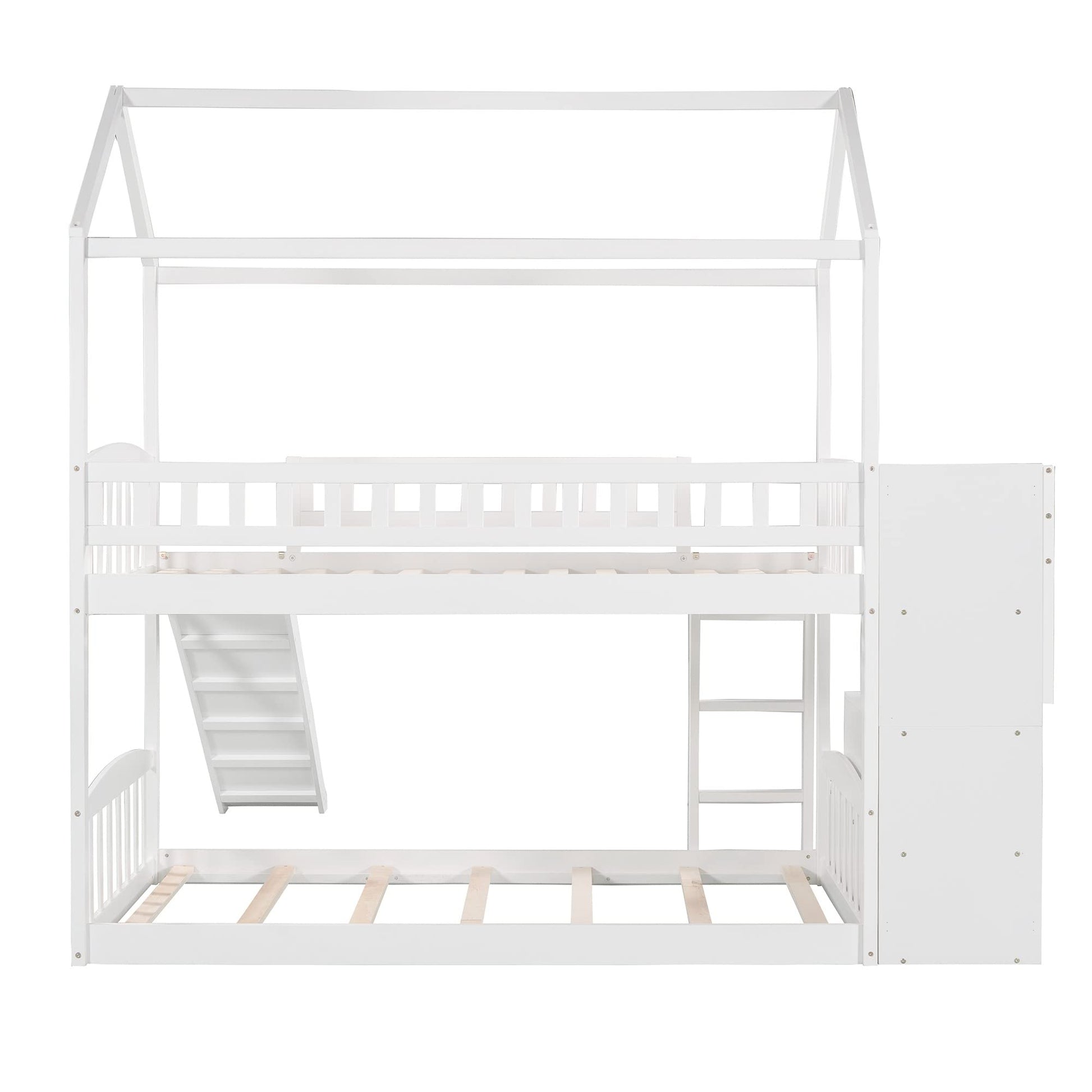 Modern Bedroom Furniture White Double Storey House Bed with Drawer and Slide